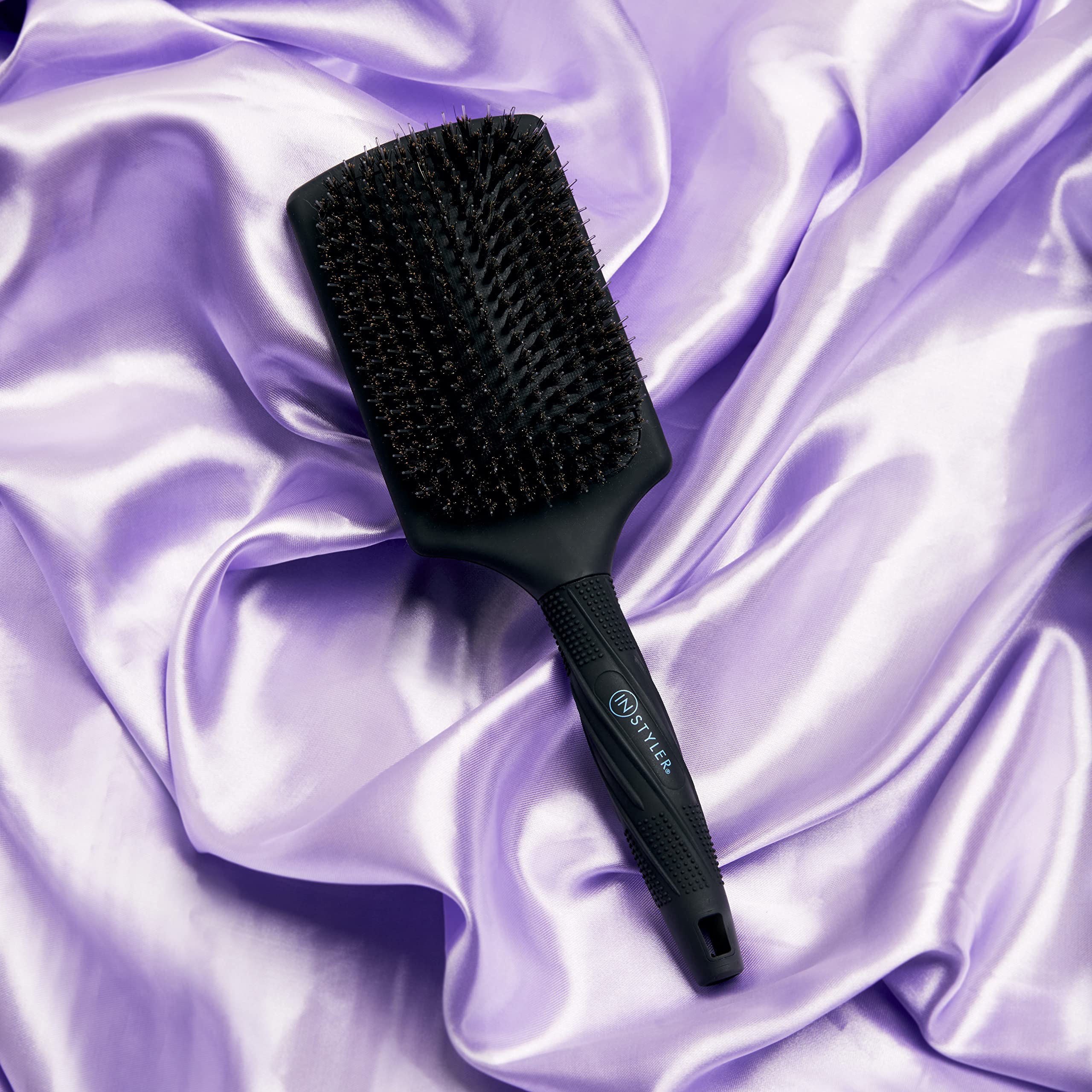 InStyler Smoothing Paddle Hair Brush - Helps Smooth Away Frizz While Drying Hair - Includes Extended Boar Bristles and Rubber Handle for Comfort