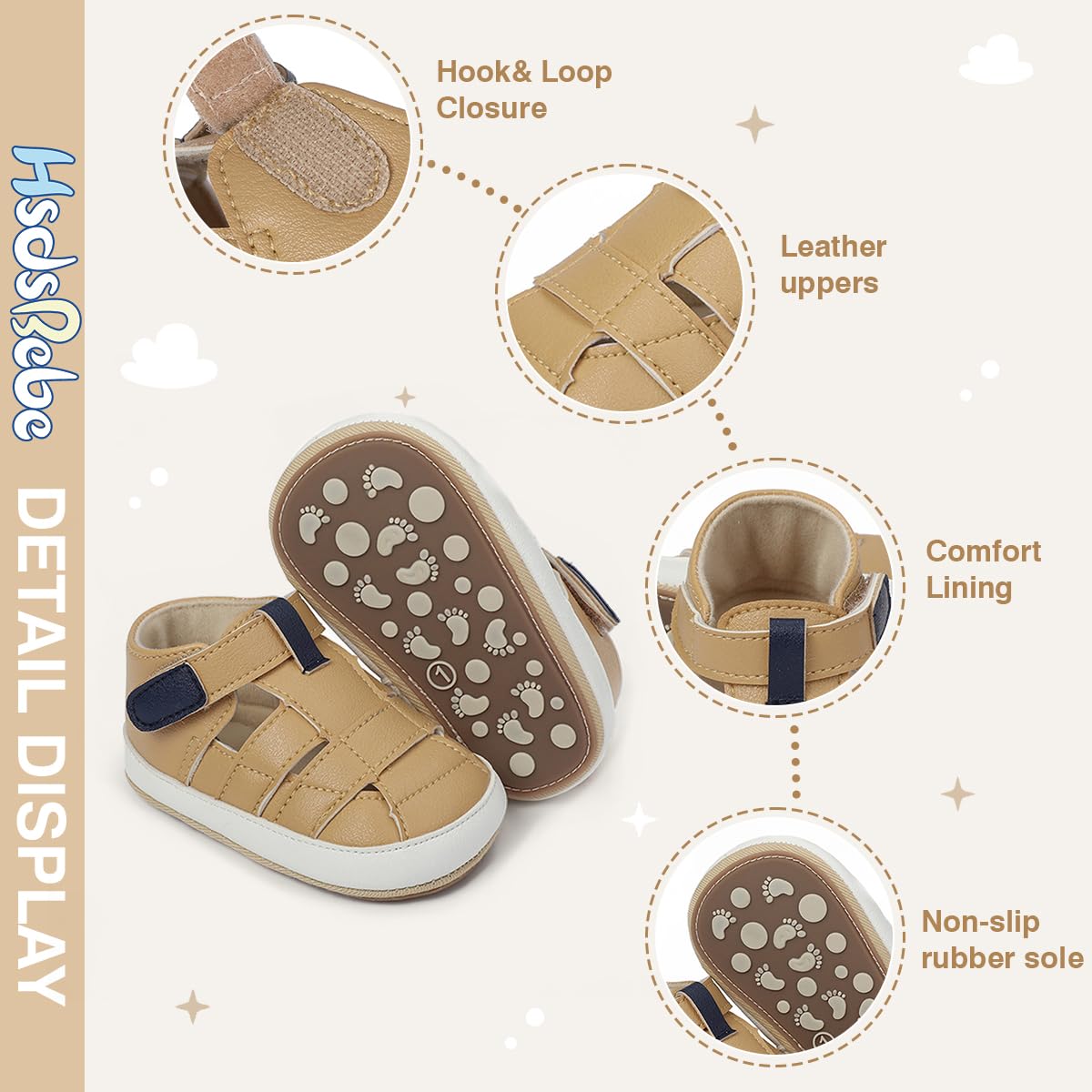 Comfortable:Soft,Lightweight and Sturdy bottom design perfect for new walkers play outside,inside of the shoes is wide and there is enough space for the baby's feet to grow, which will be the best choice for the baby with chubby feet