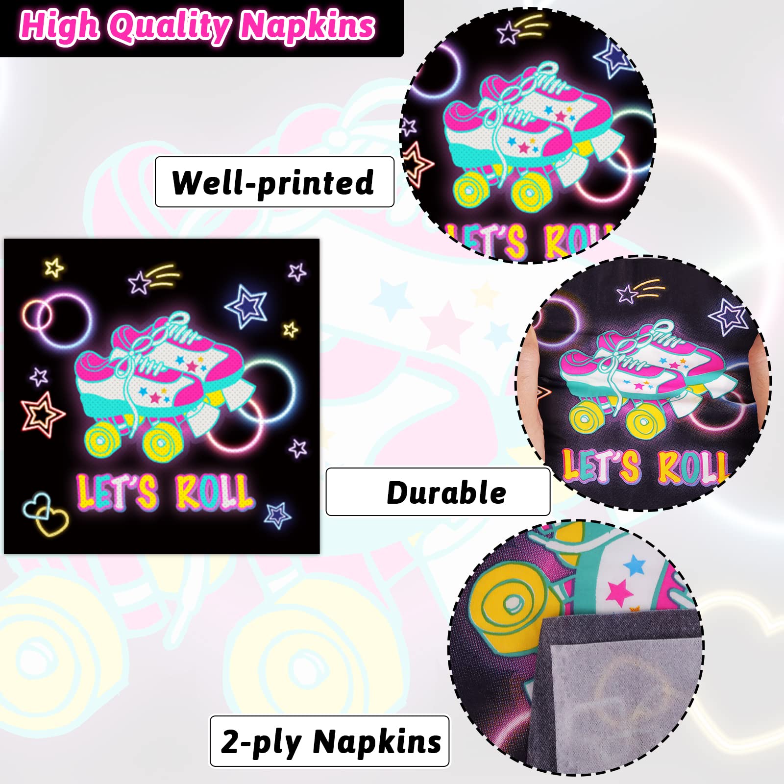 【High-Quality】Roller skating party plates and napkins set are made from cardboard, thickened and sturdy, and can hold up well with any kind of food. The napkins are soft and non-smell. The retro roller skate party supplies are designed in roller skate patterns, making the whole supplies set look more energetic.