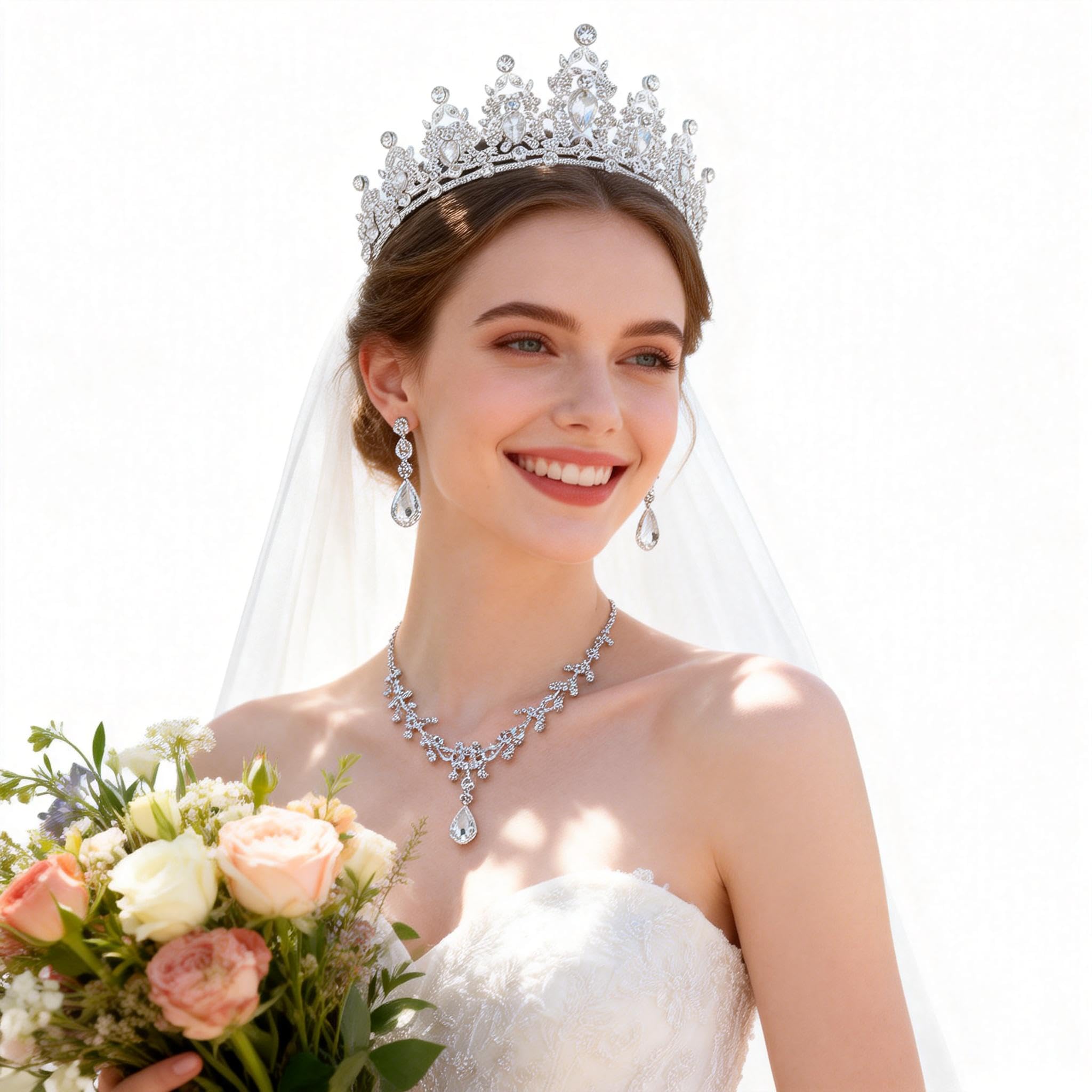 Dimensions: Dia 13-15 cm Height 6 cm,The crown has a diameter of 5.7 inches, a modest size perfect for adult women . This tiara features an adjustable steel ring design, allowing for subtle adjustments to fitvarious head shapes and sizes
