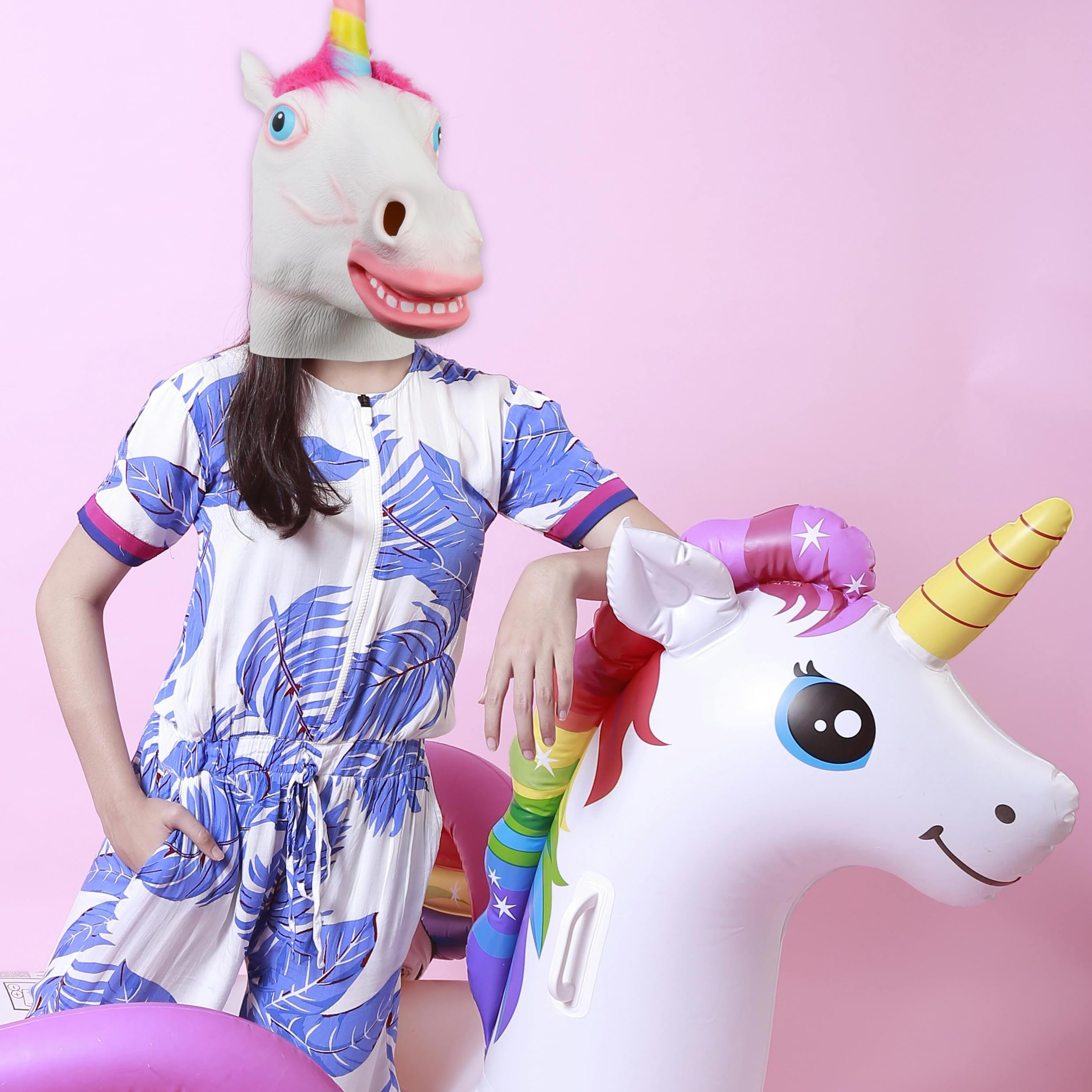 【Visibility & Breathability】There are no obstacles in your sight and breathing. You can see through the mouth and nose of the pink unicorn adult costume. This will add more joyful and active atmosphere to you.