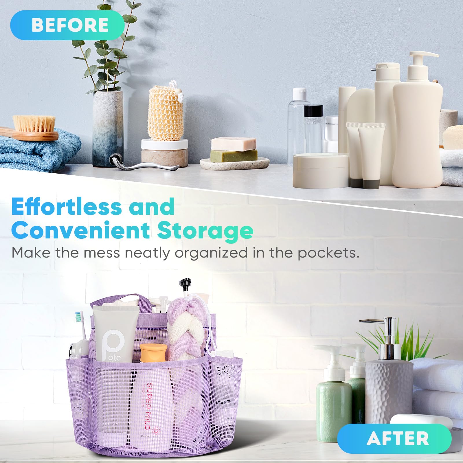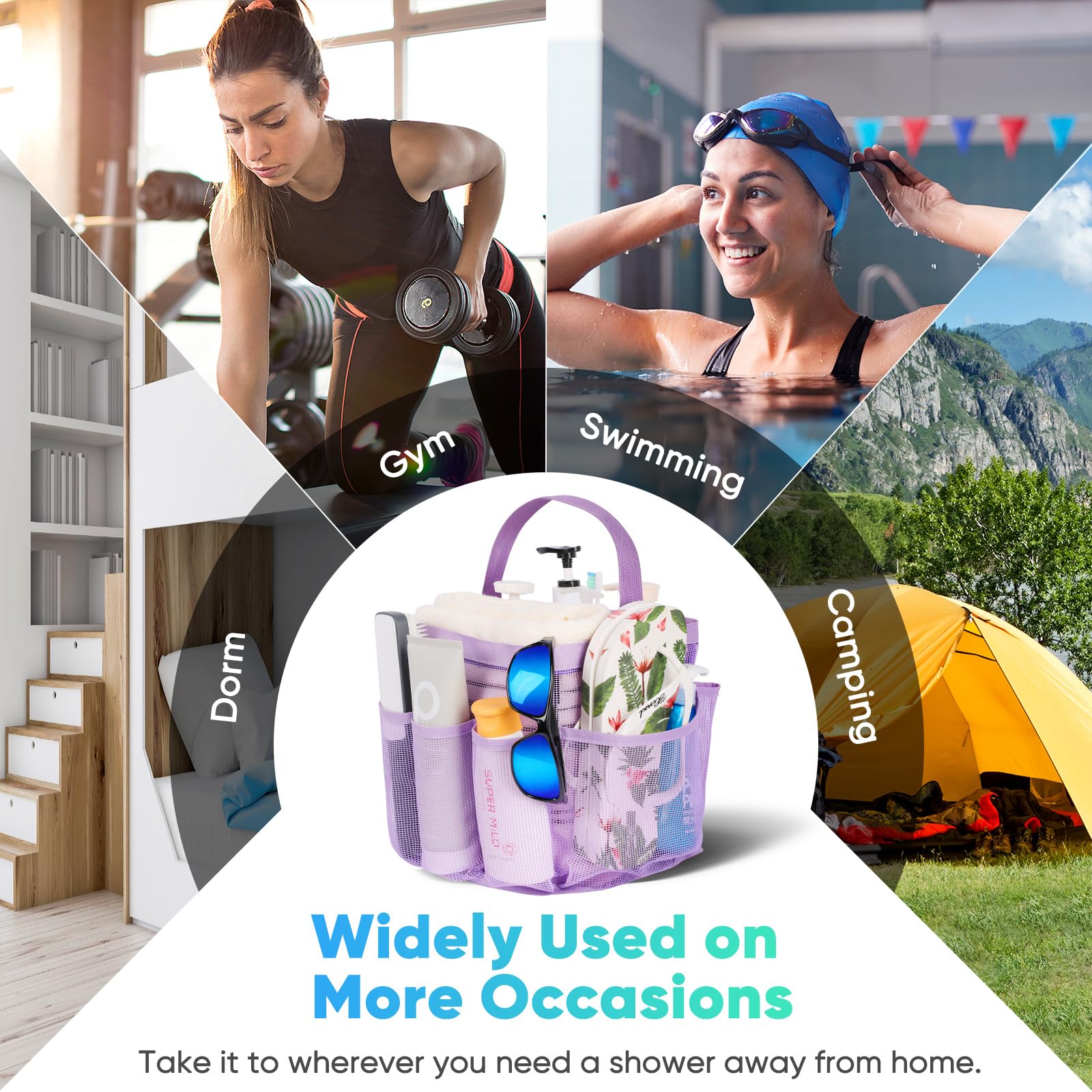 Quick Dry, Easy Clean:Quickly get access to the needed item stored in the portable shower caddy. Breathable mesh fabric is the perfect choice for shower bags, which drains water away easily and dries up quickly. Wash and dry the shower bag at any dry and ventilated place to prolong the lifespan.