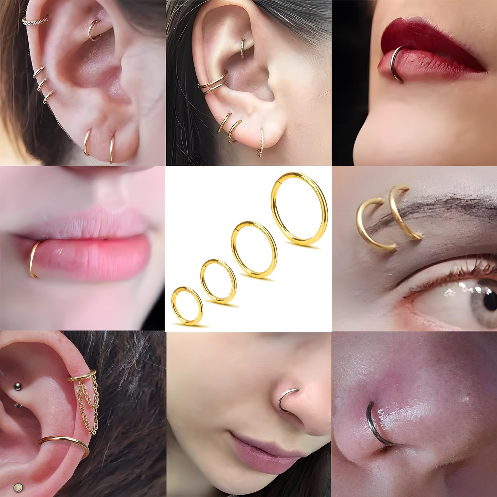 Great Ear Nose Clicker Rings for Women Men: We offer different sizes and colors hinged clicker hoop rings, can be used as nose rings hoop, septum jewelry - septum rings / septum clicker, cartilage earring, conch hoop, helix hoop, tragus/rook/daith piercing, lobe earrings, lip rings etc.