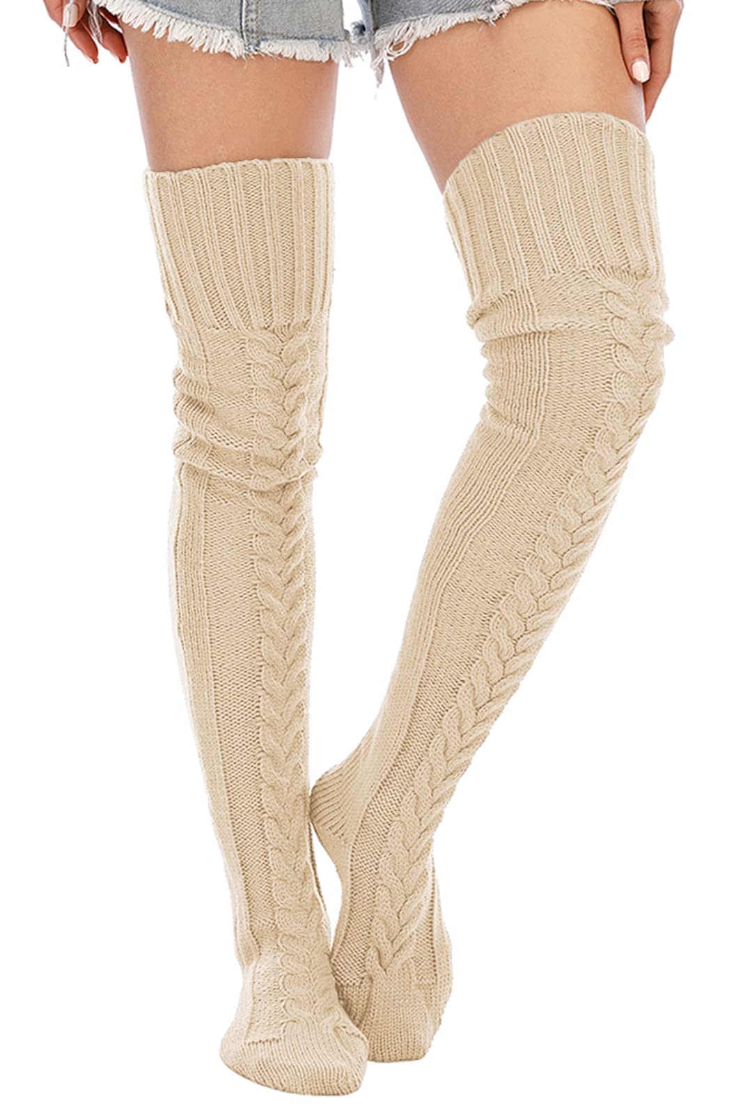 Premium Materials: These thigh high socks are knitted from high-quality soft acrylic fibers that are lightweight, breathable, and stretchy. The fabric hugs your legs comfortably without feeling restrictive