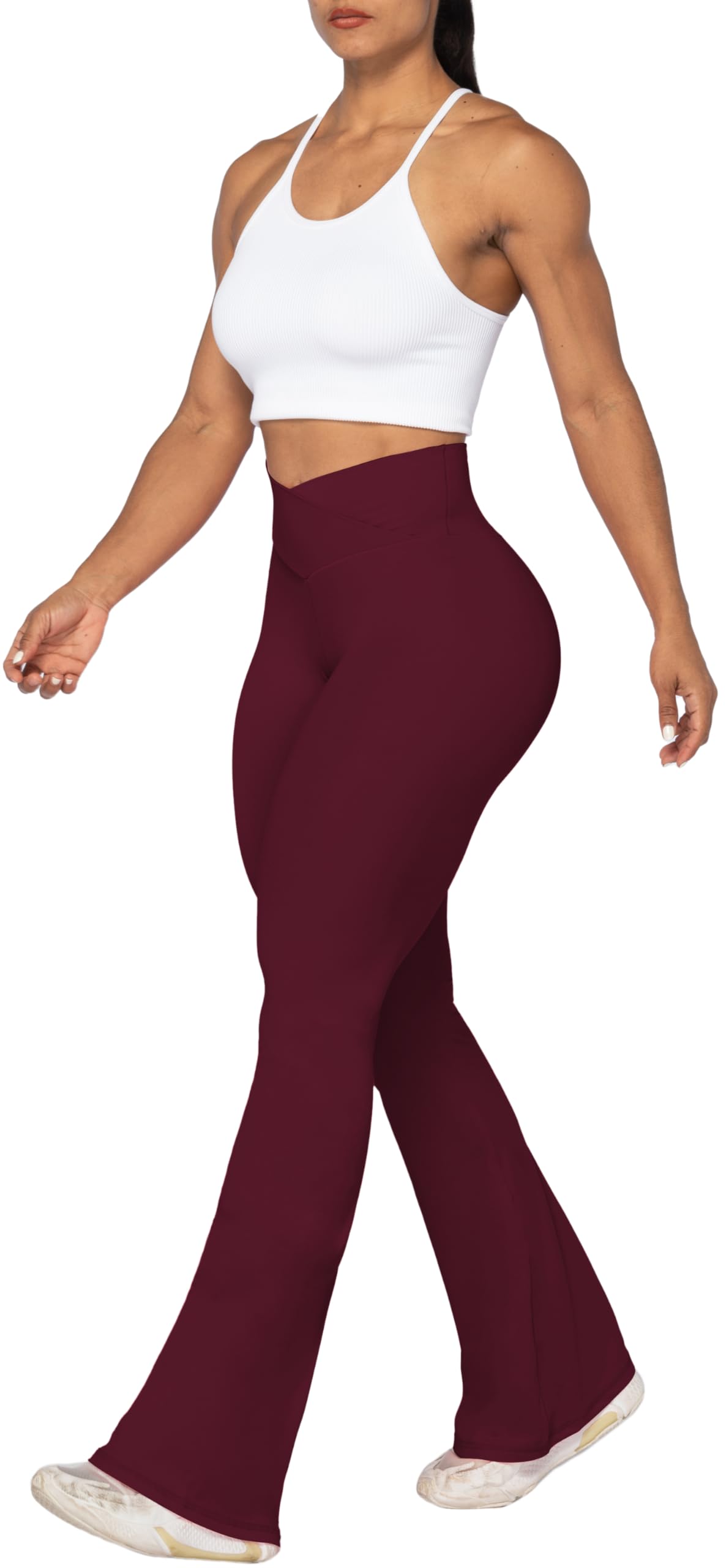 [Crossover Waistband] The flare legging is designed with crossover waistband and V seam that gives you a flattering fit.