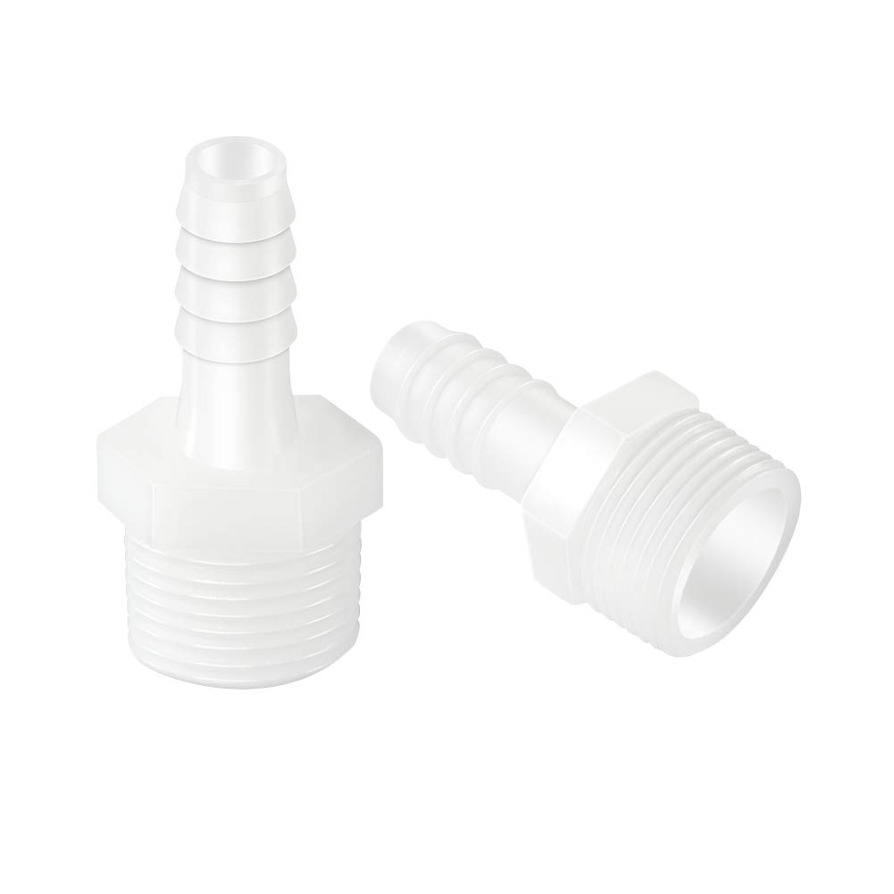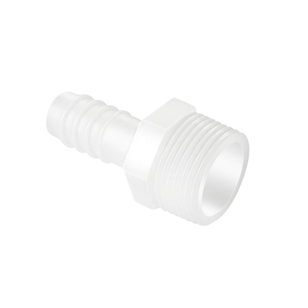Barbed fitting creates a tight seal on flexible and semi-rigid hose when used with a hose clamp or crimp sleeve or ferrule.