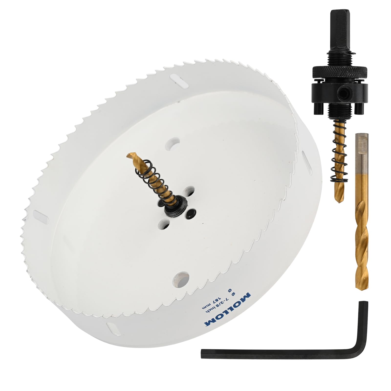 【Dimension】Cutting Dia: 187mm | 7-3/8";Shank Dia: 11mm | 7/16",BI hole saw over 51mm require stronger shank to ensure more security;Hole Saw Depth : 38mm | 1-1/2".Adopting raw materials of Japanese brand sawbands