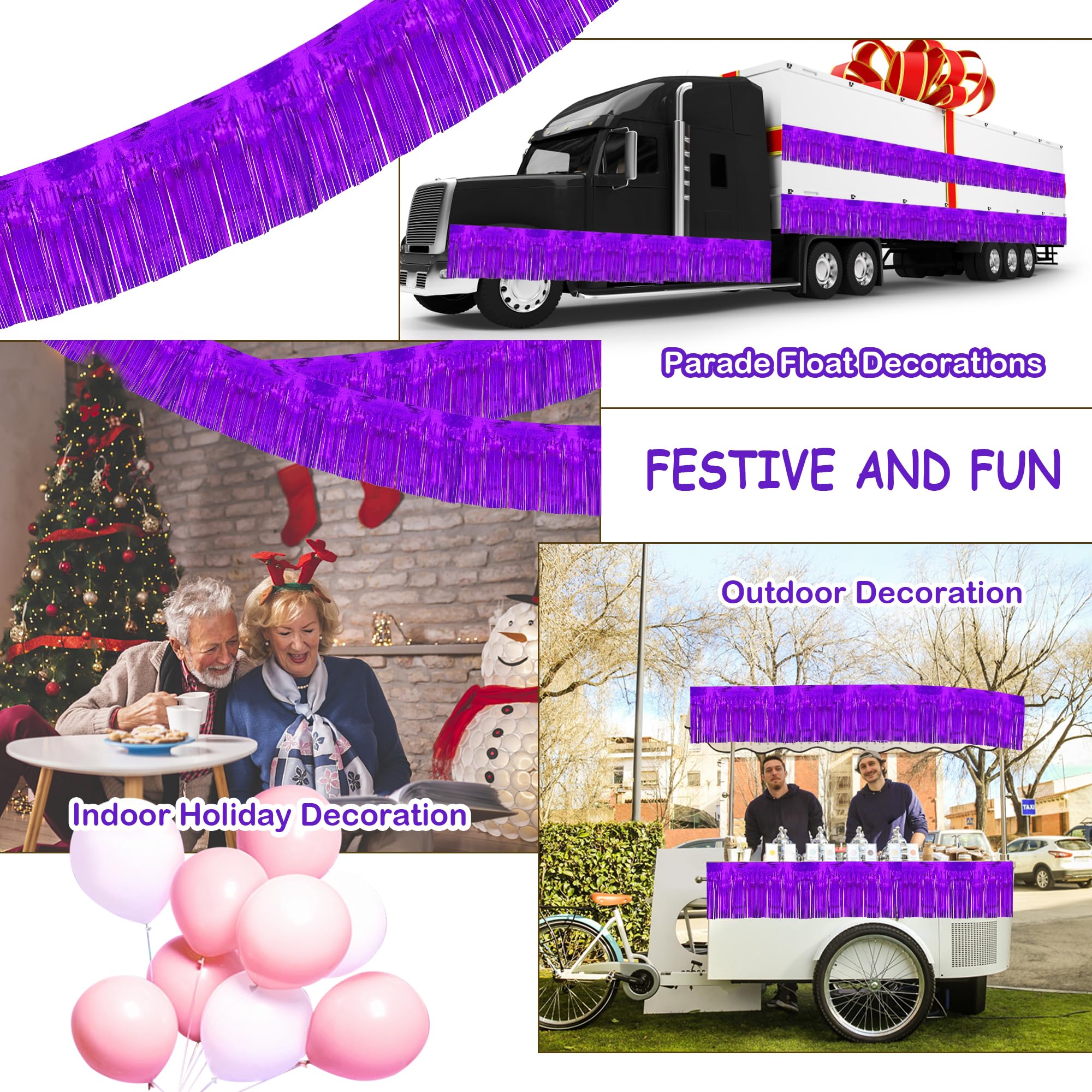 PACKAGE INCLUDES: Comes with 4 packs of glitter purple fringe, Each garland is 10*1 ft/3*0.3m (L*W ), Enough quantity and more shiny, you can cut it into any size to meet your decoration needs. With these festive tassel streamers, you can take your parade float decorations and party to the next level