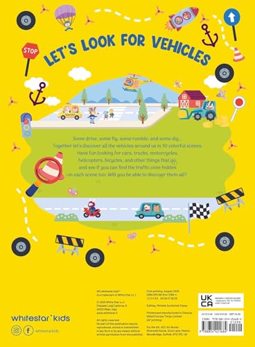Ten themed scenes featuring awesome vehicles from airplanes to ships, trains, construction machinery and more! A fun challenge for children as they search for hidden objects in each richly illustrated scene. Engaging activities that promote learning through play. Third title in a series of Search & Find big board books: other titles in the series "Christmas" and "Monsters". Dive into “Search & Find: Vehicles” where children embark on a quest through themed scenes filled with cars, ships, airplanes, and more. Perfect for independent play, this beautifully illustrated book offers an exciting search for hidden details that will delight young explorers.