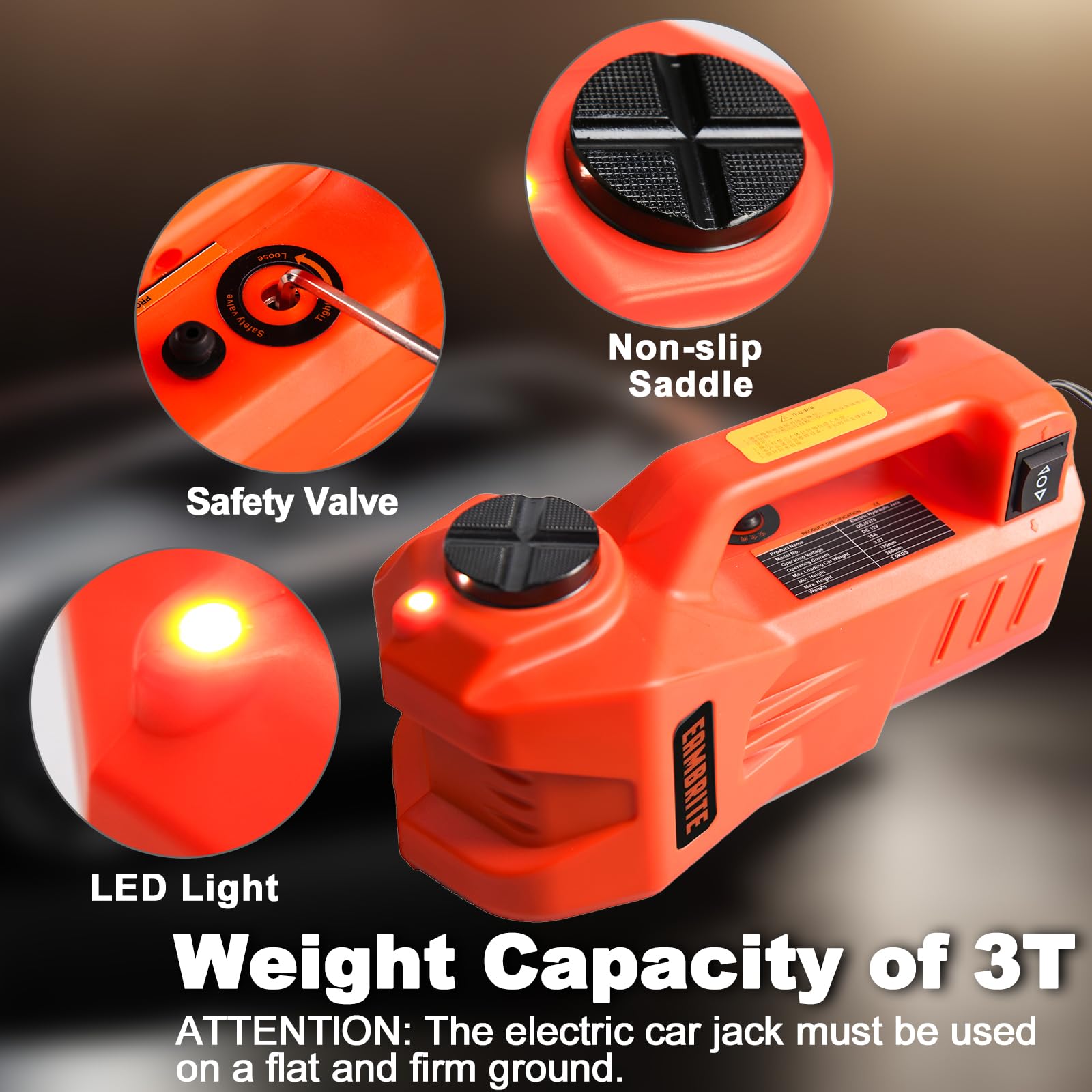 Built-in Safety Valve: Equipped with self-locking structure, jack can keep current height even out of power by accident