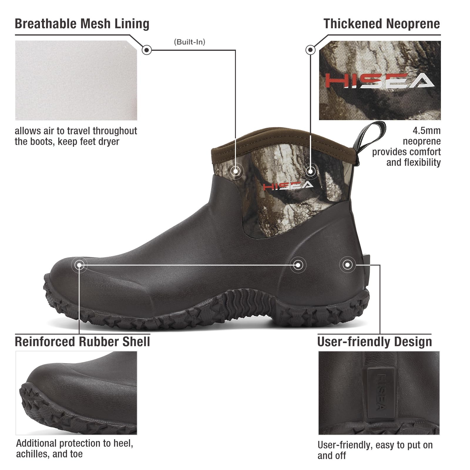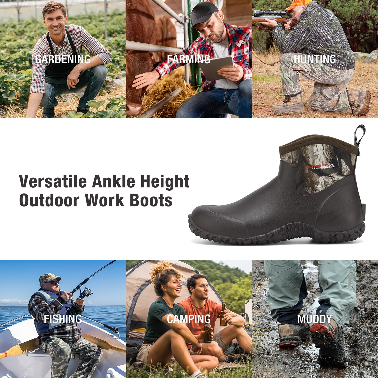 【Multi-Functional Outdoor Work Boots】Slip into waterproof, breathable and comfort with HISEA Men's Ankle-Height Rain Boots. Perfect for all outdoor activities and adventure, such as gardening, camping, hunting, farming, fishing, yard working, walking the dog, fishing. Good for all-day long use on your feet.