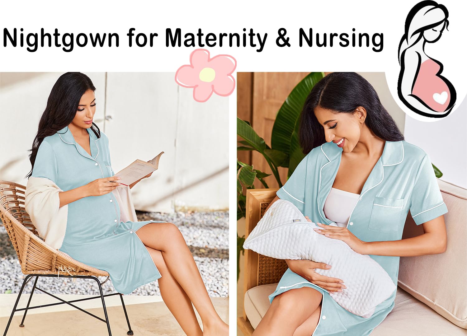 Functional Nightshirt: The button-down nightgown is perfect for breastfeeding, you can use this sleepshirt as a nursing nightgown and wear a nursing bra underneath, which is very useful and convenient