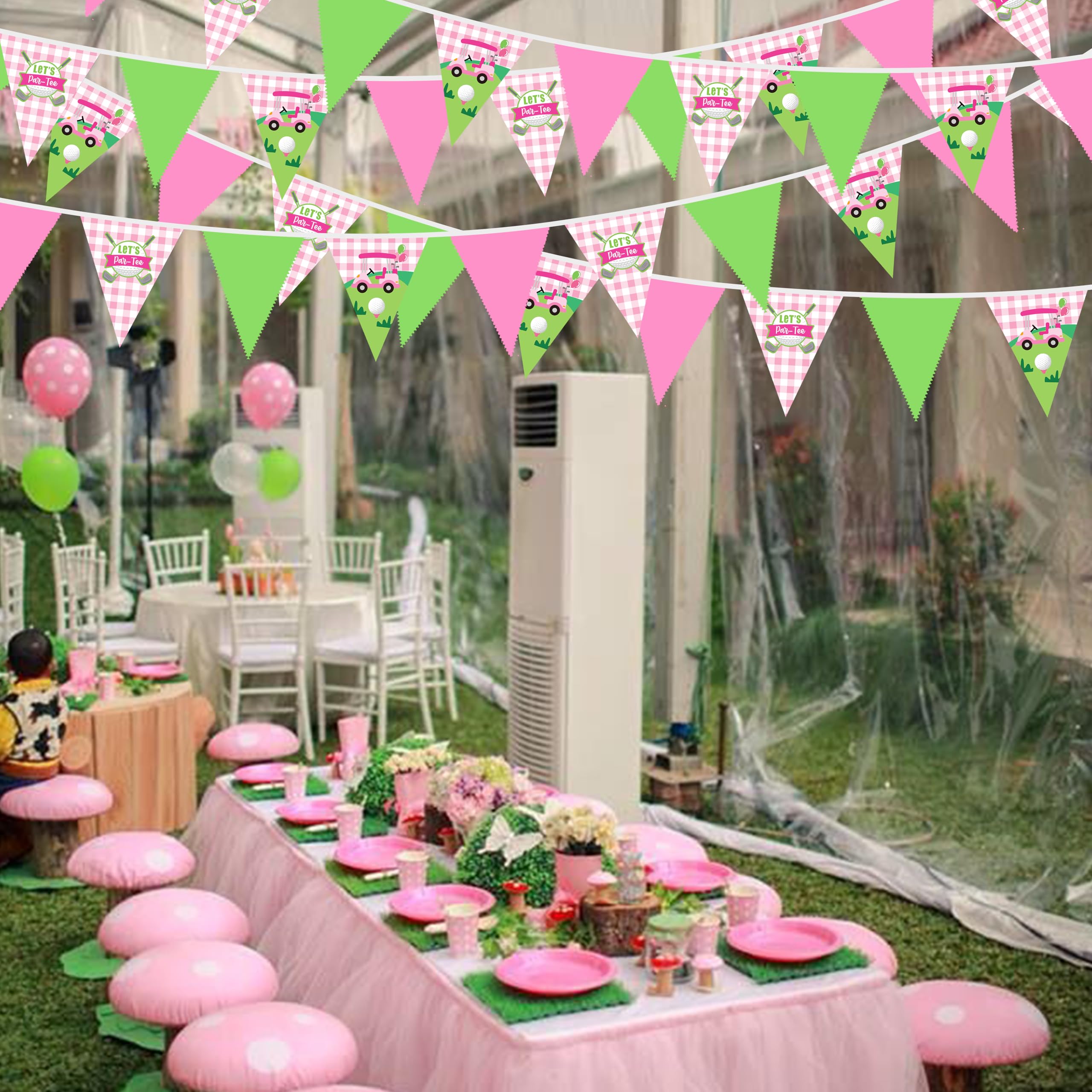 Easy Using: The pink green golf party flag banners are very easy to hang and decorate both inside and outside, like home, wall, bedroom, dining room, ceiling, fireplace, window, garden, branches, fences, restaurants, bars