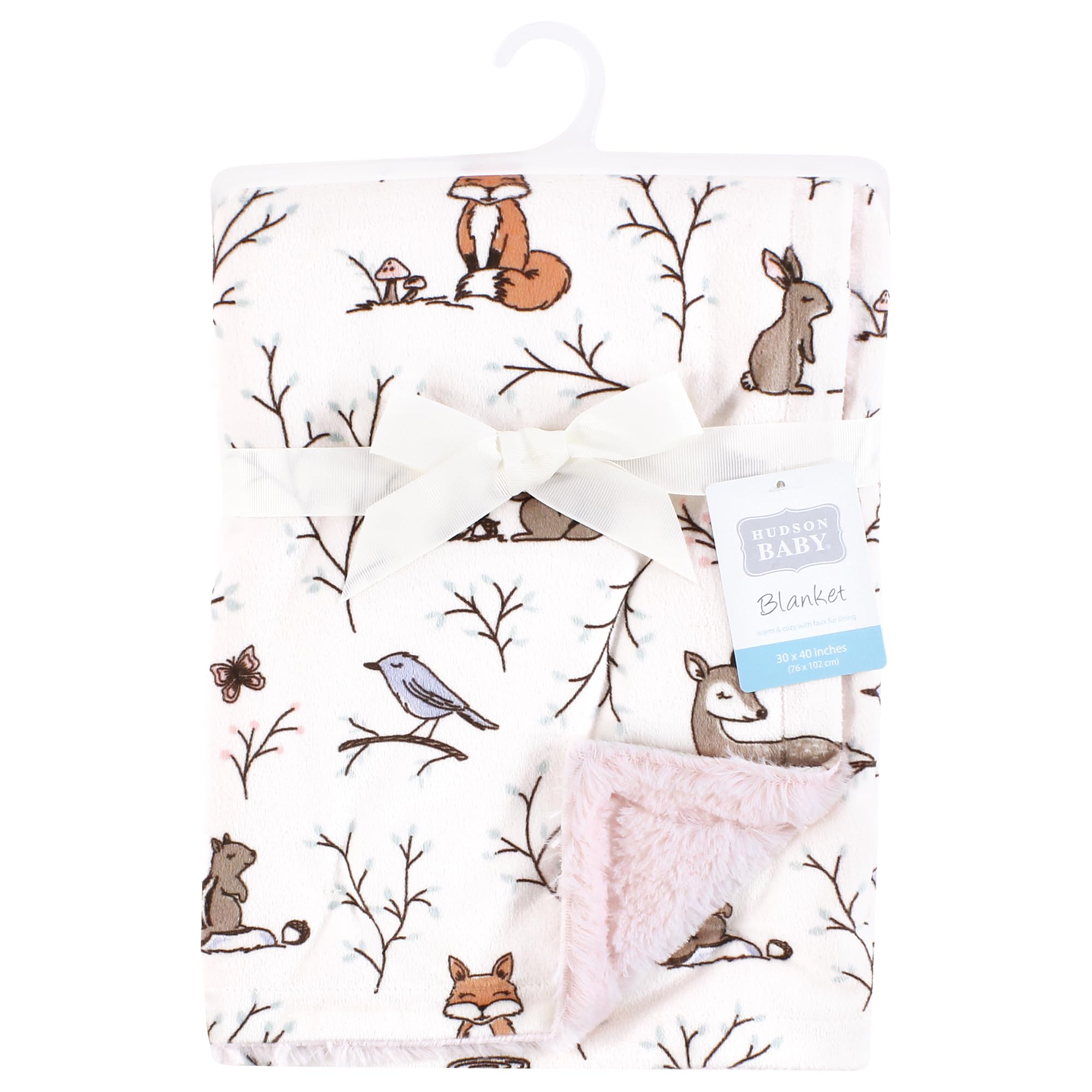 Hudson Baby plush blanket with furry binding is a super soft, warm and cozy baby blanket to add to your little one's nursery. Measuring 30x40 inches, our blanket is soft and gentle on baby's skin and great for everyday use. Our blanket is great for snuggle and sleep, but also as a stroller cover, car seat blanket and more.
