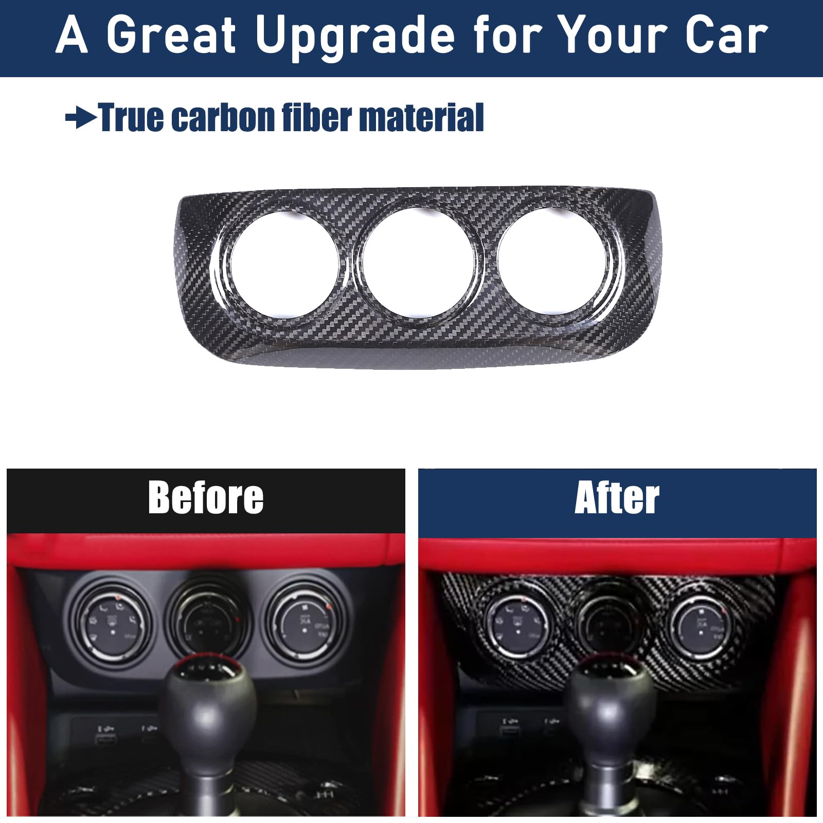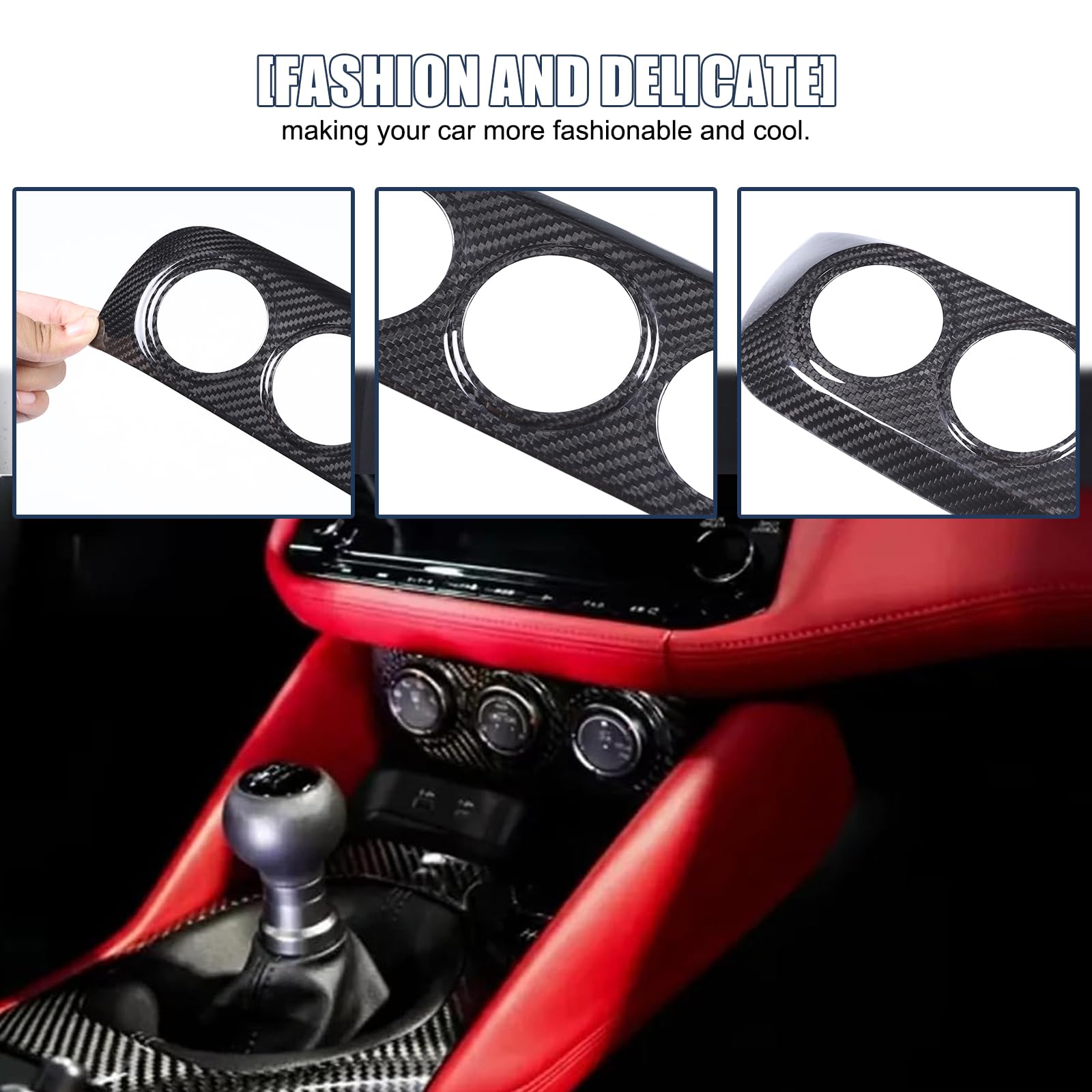 【Quality Material】: Crafted from premium real carbon fiber material, this trim features a smooth surface that resists wear and fading, maintaining its flawless appearance even with constant use.