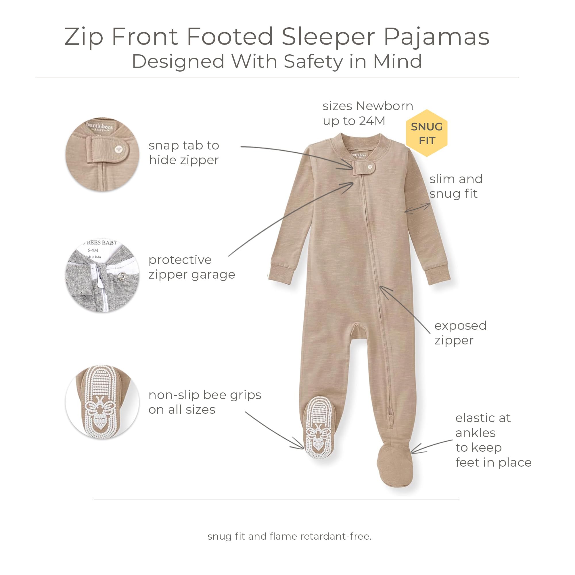 Bee Grips: Burt's Bees Baby footie PJs have a non-slip "bee grip" on the bottom of the foot to provide stability for early movers. This ensures your little bee stays steady during active playtime.
