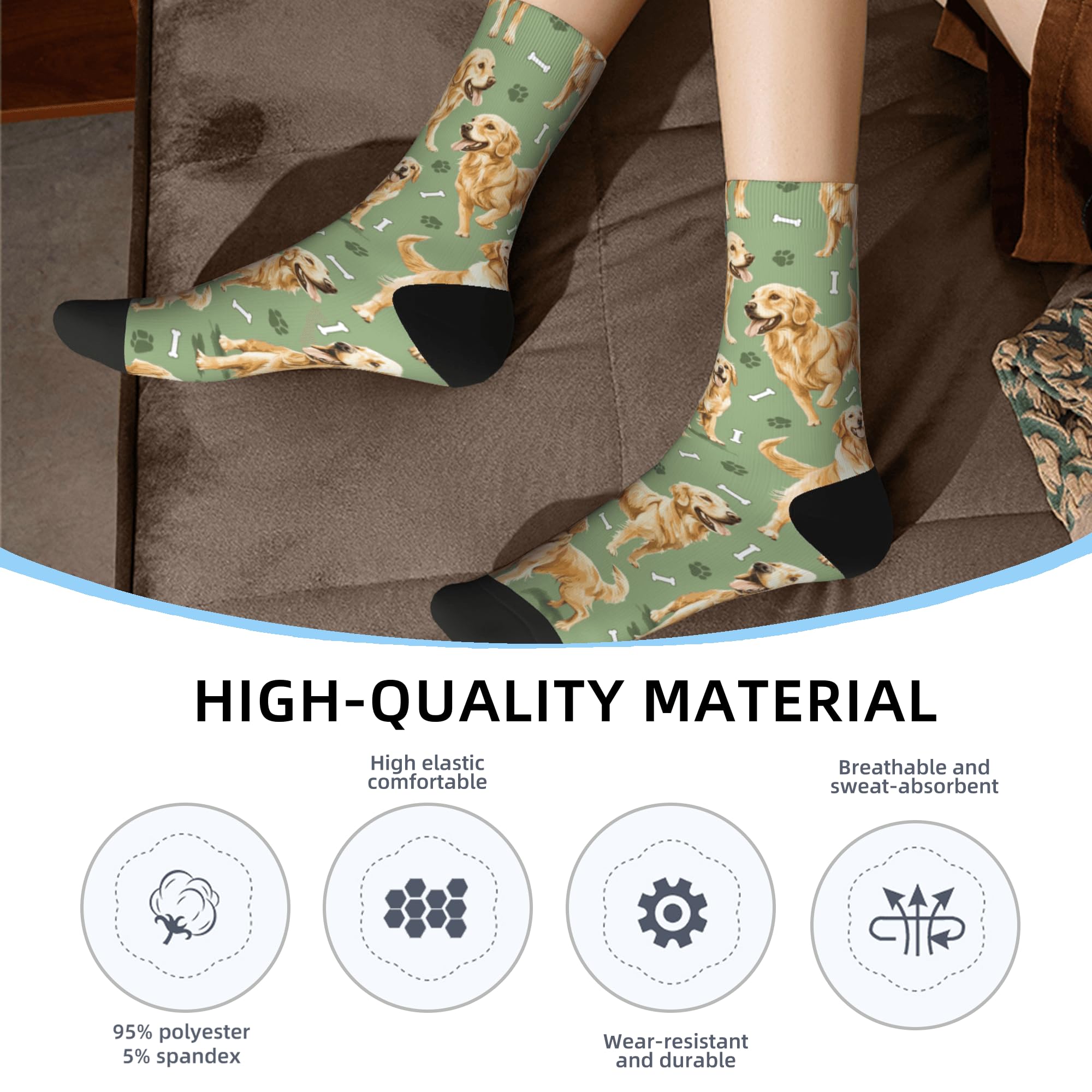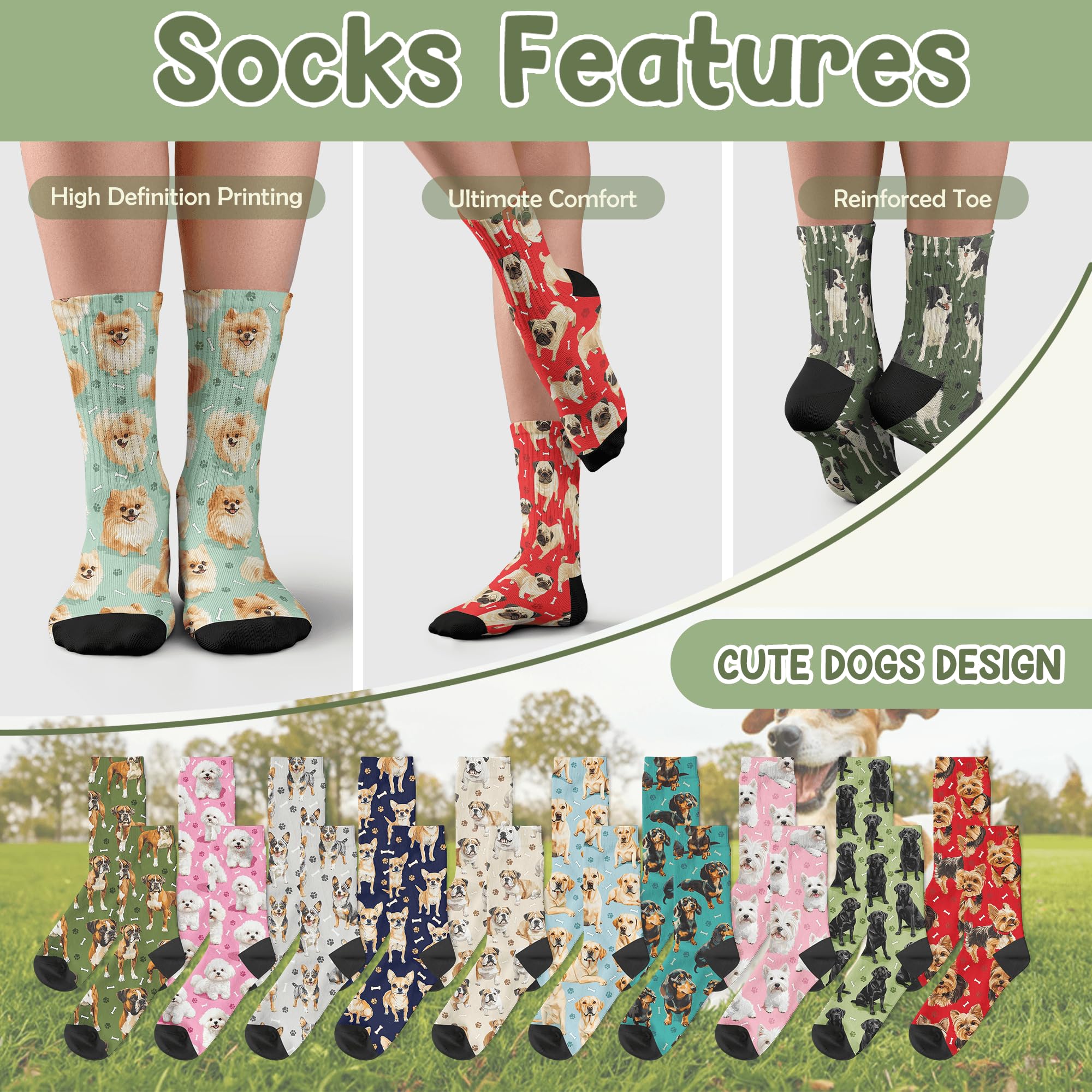 QUALITY MATERIAL: Our dog print socks are designed with a comfortable composition of 90% Polyester and 10% spandex for a flexible fit. They won't fade and are machine washable.