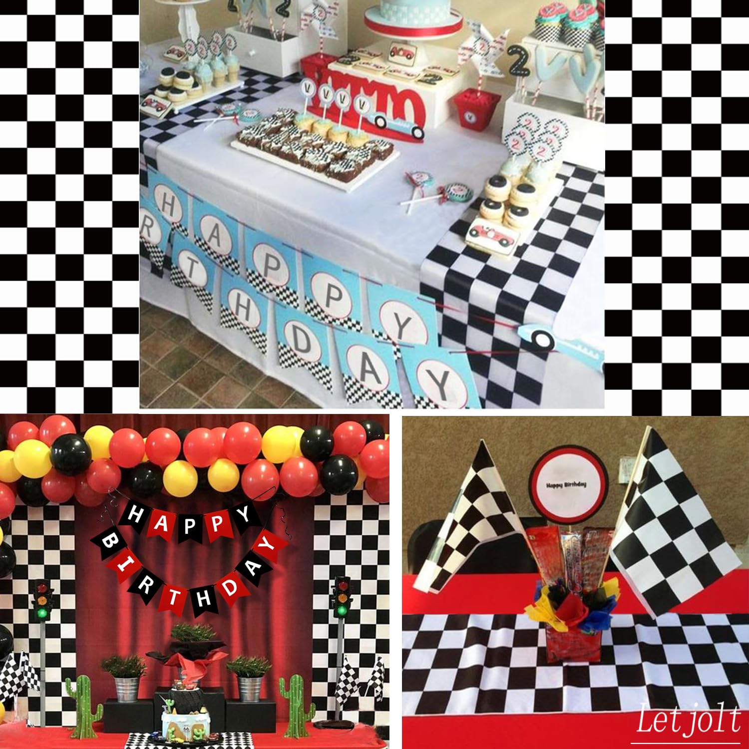 Black red happy birthday banner signs decorations racing theme birthday party supplies garland birthday signs nursery hanging Decor 13pcs