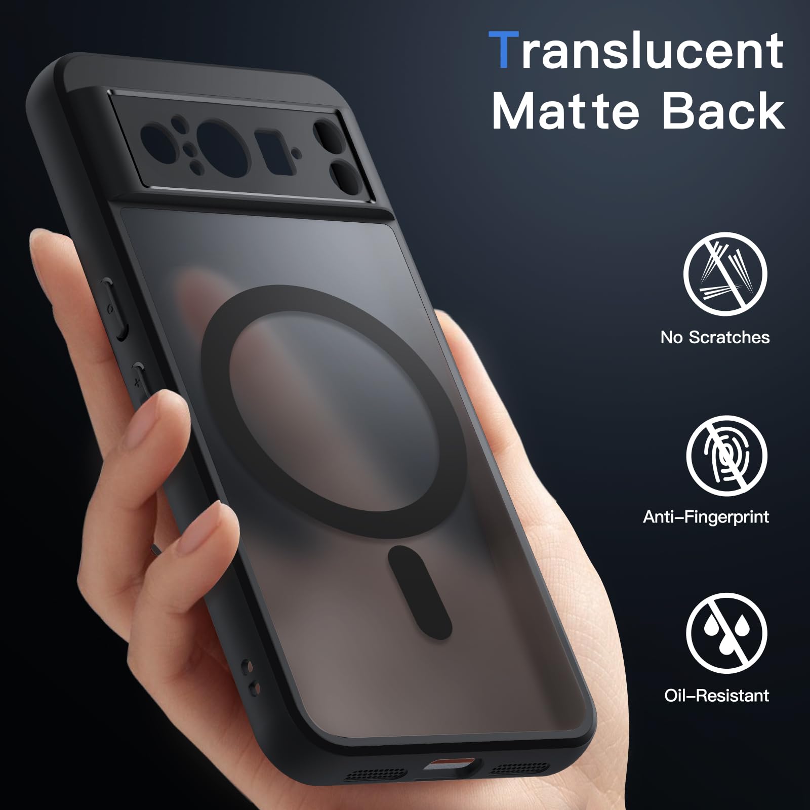 JETech Magnetic Case for Google Pixel 8 Pro 6.7-Inch 2023, Compatible with MagSafe, Translucent Matte Back Shockproof Phone Cover
