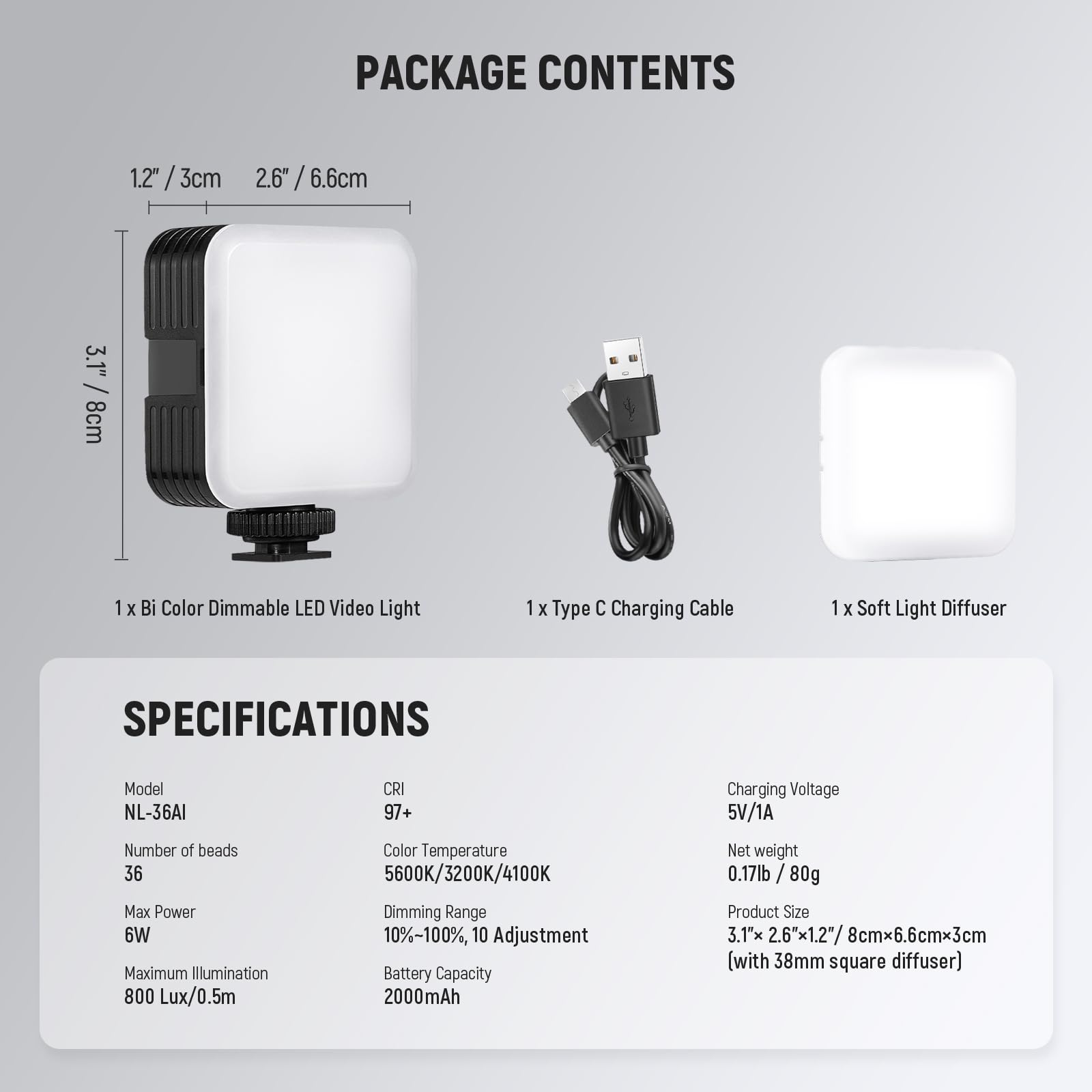 【Professional LED Soft Lighting】 With 36 high brightness LEDs (18 warm light LEDs and 18 white light LEDs), a 120° beam angle, a maximum illuminance of 800 lux at 0.5m, this small portable led cube camera light with diffusion panel provides key lighting for streamer live streaming, makeup artists selfies, as content creator essential and influencer must have for YouTube video recording, to film TikTok, vlogs, studio portrait photos, photoshoots, filming, videography, product photography, etc.