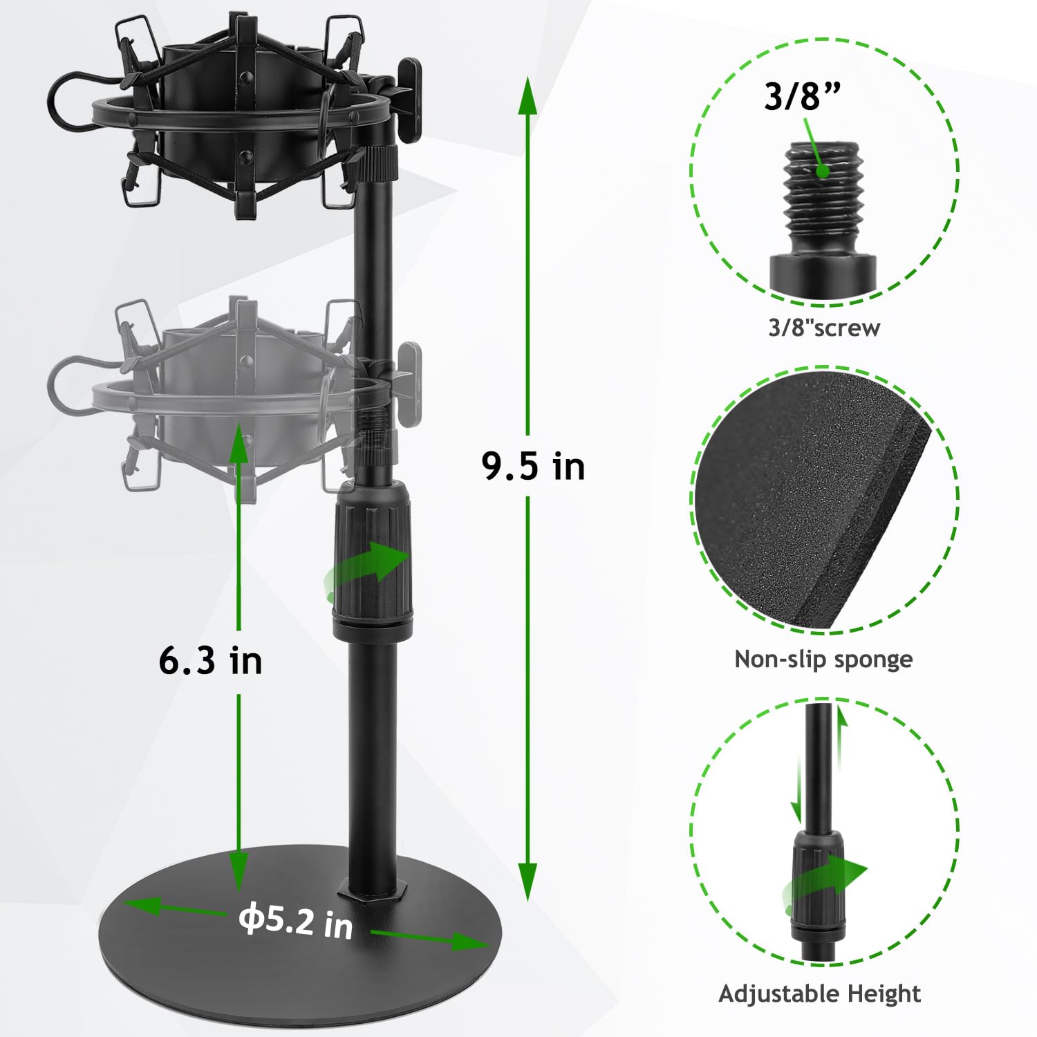 Professional Desktop Stand - This is a desktop microphone stand specifically designed for the Audio Technica AT2020 microphone, for AT2020USB, AT2020USB+, AT2035 Microphone, also suitable for any other 1.8 in to 2 in diameter microphones.
