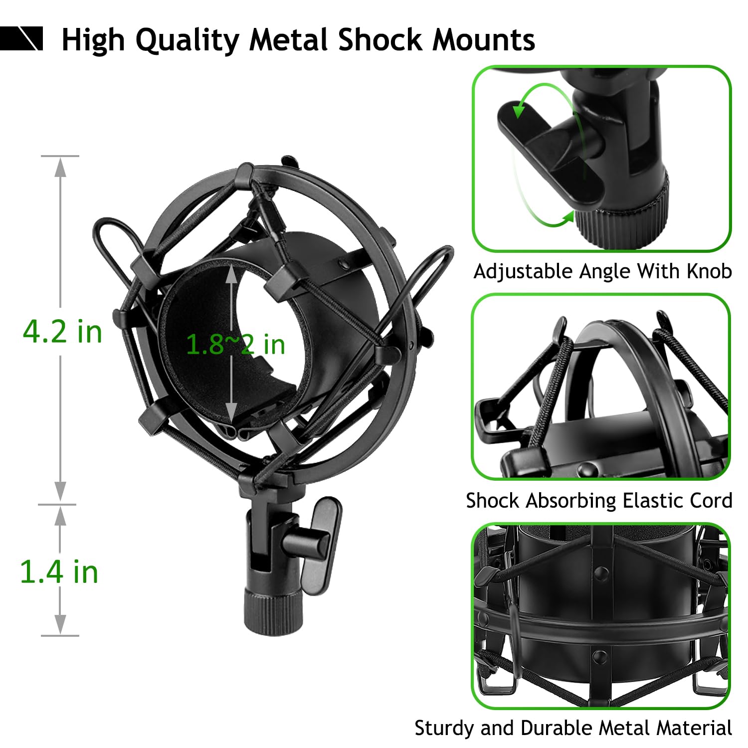 Professional Shock Mount - The shock mount with optimized suspension straps and high elastic winding rope design to protect your mic from vibration, shaking, shock pop and distortion. Reduce the noise and help improve your sound quality.