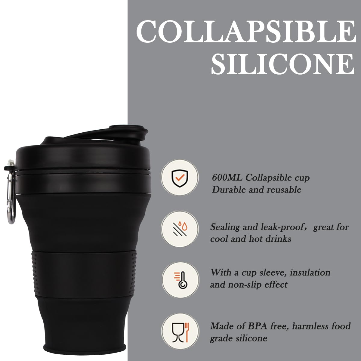 BPA-Free Material- This collapsible drinking cups is made of food-grade silicone, safe and odorless PP lid and cup sleeve, both environmentally friendly and reusable.