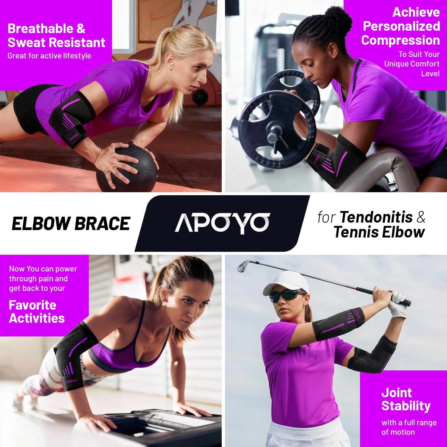 ✅Phenomenal Protection: APOYO elbow braces apply leveled pressure across your elbow joint which provides ultimate pain relief from a variety of ailments including tendonitis, joint inflammation, tennis elbow brace for men and women, golf elbow, and other elbow pain. Achieve lasting relief and peak performance. Whether you are living with a chronic condition or chasing your personal bests!