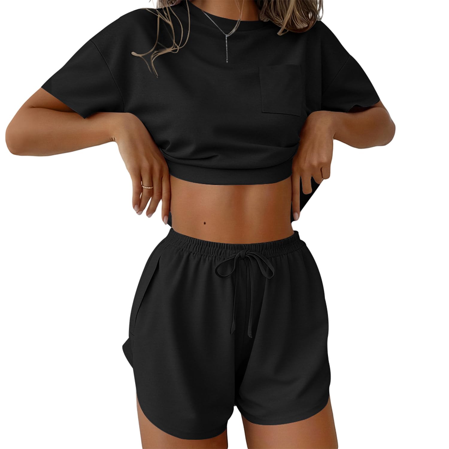 SHORTS: Pajama shorts for women with soft elastic waist that fits for any body size. 2 piece sweatsuits for women set have curved hem, exquisite and unique. There are pockets on both sides, you can put mobile phones, small snacks in the pockets