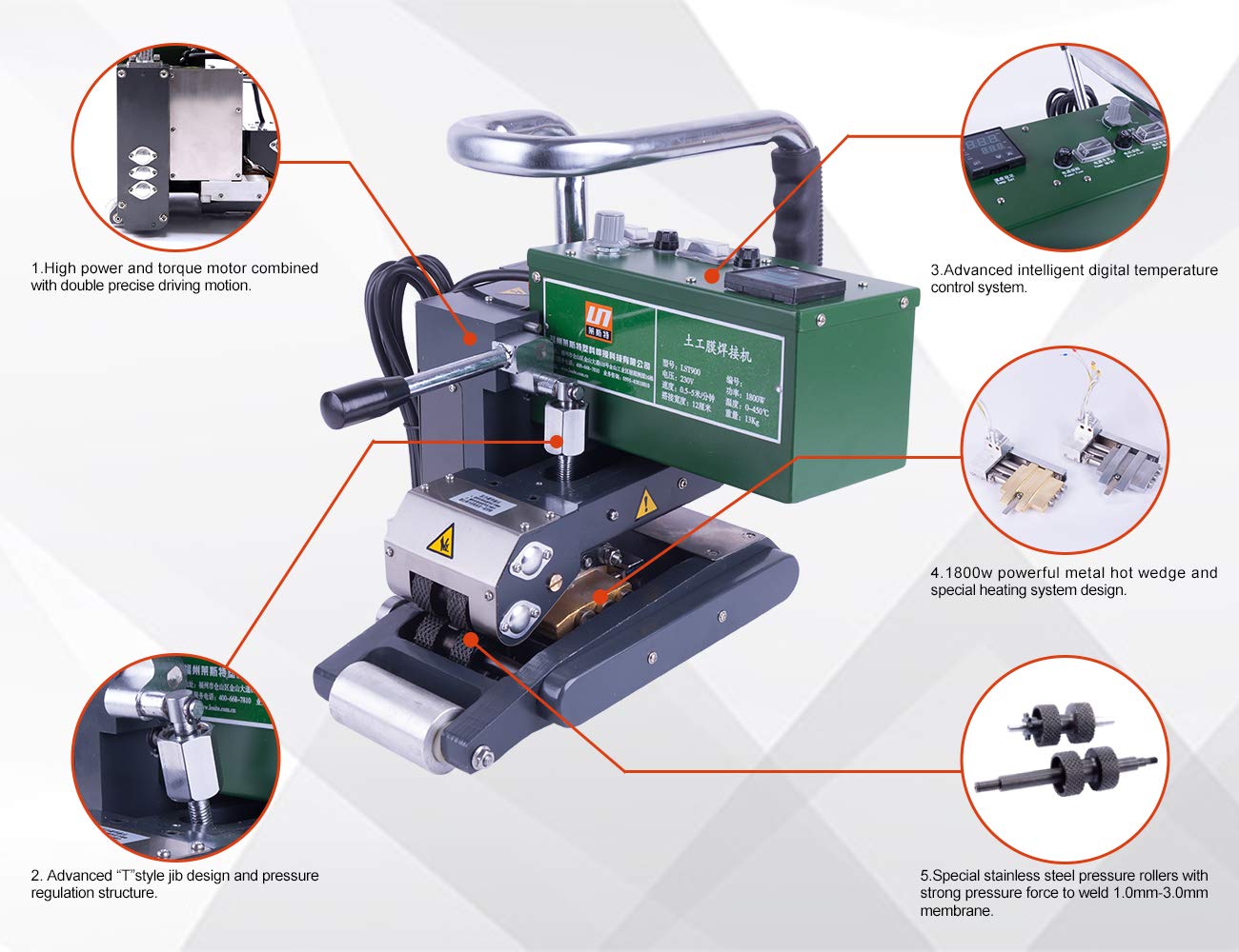 1800W high power, heavy-duty geomembrane hot wedge welder