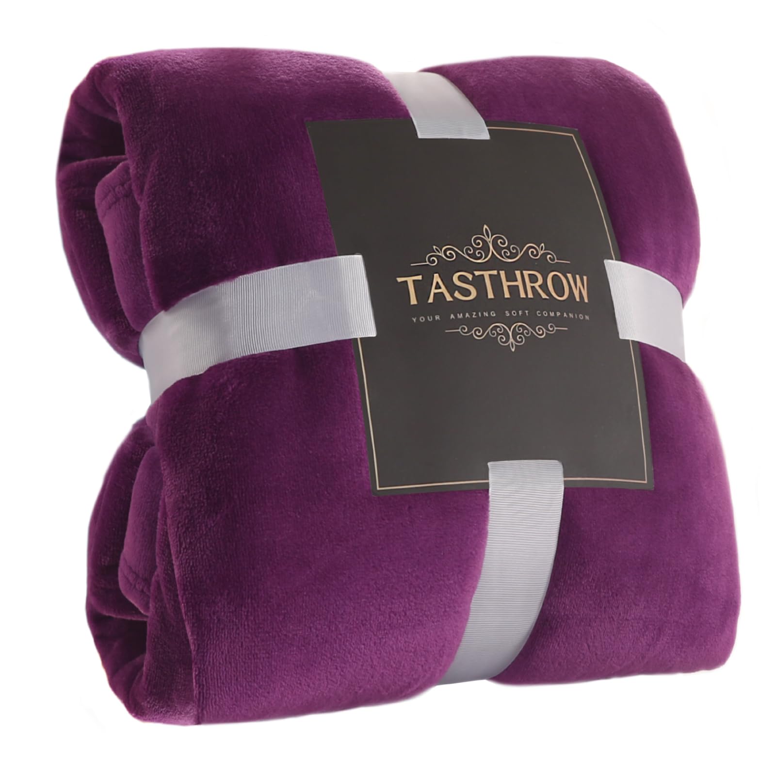 ABOUT TASTHROW TASTHROW, your amazing soft companion We are a factory specializing in blanket and home textile products production for more than a decade. We registered this brand TASTHROW which means tasty throw, we want to provide you with inexpensive and high-quality products and perfect services. 350GSM Flannel Fleece TASTHROW Throw Blanket Extra Soft Brush Fabric Super Warm Sofa Blanket Trouble to sleep? TASTHROW throw blanket is made from premium 100% microfiber polyester ensures blanket more soft, more breathable and more warmer which can bring extra warmth and comfort. Tired of cheap and thin blanket? TASTHROW Flannel Fleece Blanket with neat stitches enhance strong connections at seams, 350gsm flannel material make the blanket no thin anymore and offer you more reliable and long term use without losing softness. Need a throw blanket to meet your various demands? TASTHROW Flannel Fleece Blanket perfect for your couch, sofa, sectional, loveseat, recliner or bed. Great for relaxing around the house or outdoor, watching TV, reading a book, snuggling or cuddling. Buy a blanket as a gift? TASTHROW throw blanket has silk ribbon and brand card make a exquisite packaging and premium material of the blanket offer you the exquisite and luxurious experience. Perfect gift for your lover, friend and families. TASTHROW Throw Blanket Features: Size: 50 x 70 inch Material: 350gsm(grams per square meter) Flannel Includes: 1 x TASTHROW Purple Throw Blanket Care Instructions Machine Washable: To ensure the softness and prevent pilling, please wash this blanket with cold water on a gentle cycle separately Do Not Bleach: Avoid using bleach or fabric softeners, as the chemicals will reduce the softness of the blanket Tumble Dry: Tumble dry fleece blankets on gentle cycle with low temperature.