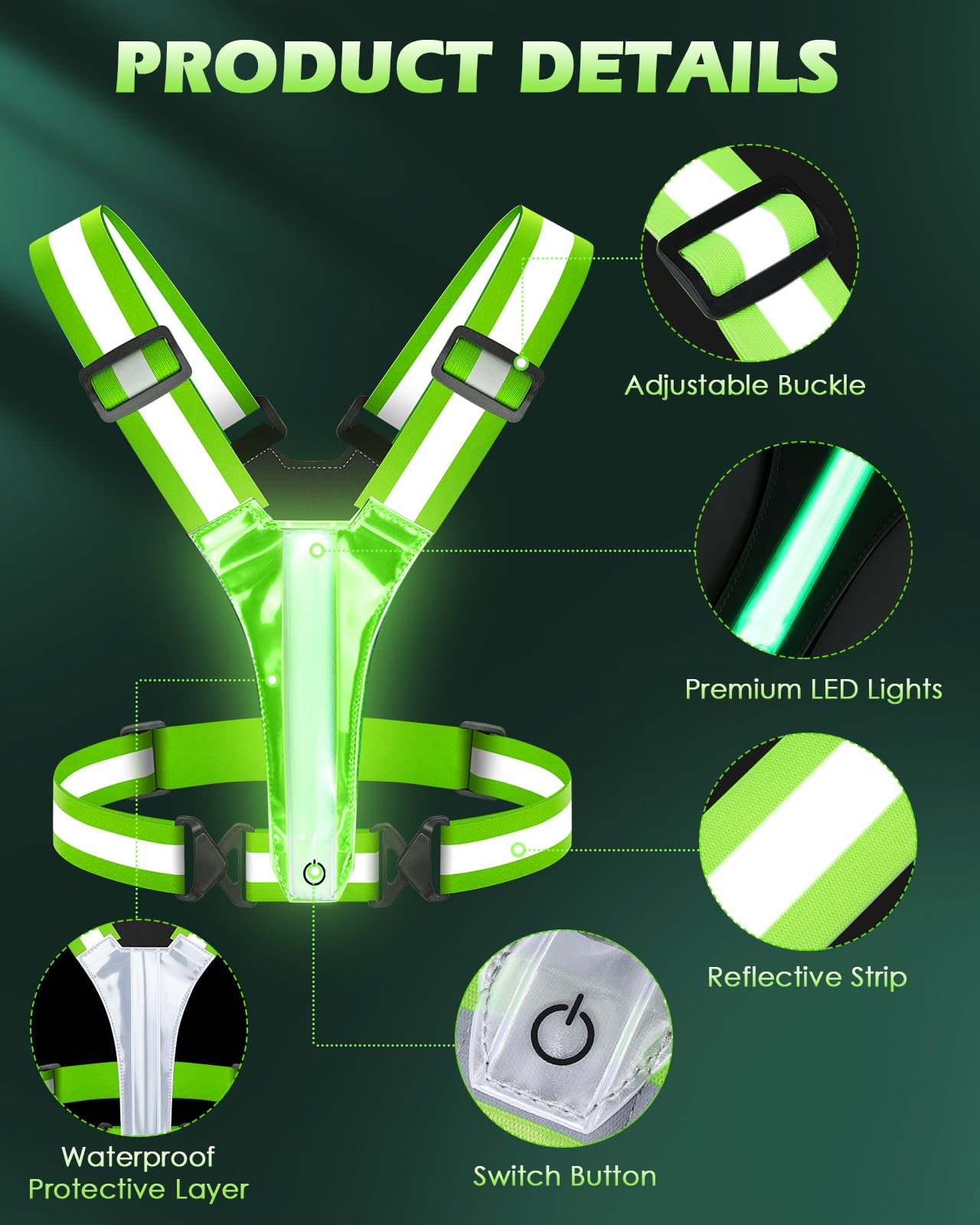 【Stay Safe, Stay Visible with High Visibility】: This LED reflective vest uses top-tier LED lights and reflective strips, 360° lighting at night to ensure your safety, even in the harsh environment of 1000 feet away. And keeping you seen and safe during low-light outdoor activities with the reflective running vest.