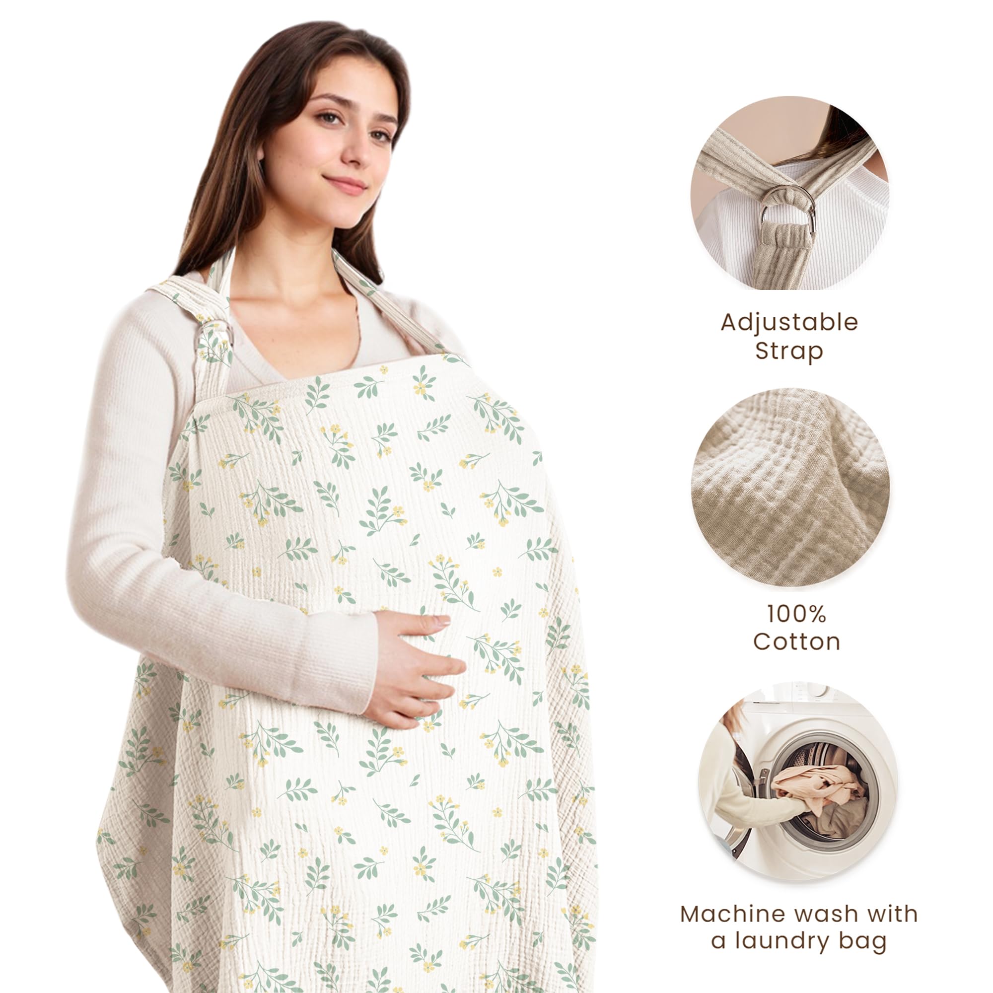Premium Fabric: Nursing cover for breastfeeding are made of 100% cotton (Muslin) for maximum breathable with skin-friendly soft touch and retain its color after washed for several times. It makes both mothers and babies feel comfortable and content during breastfeeding