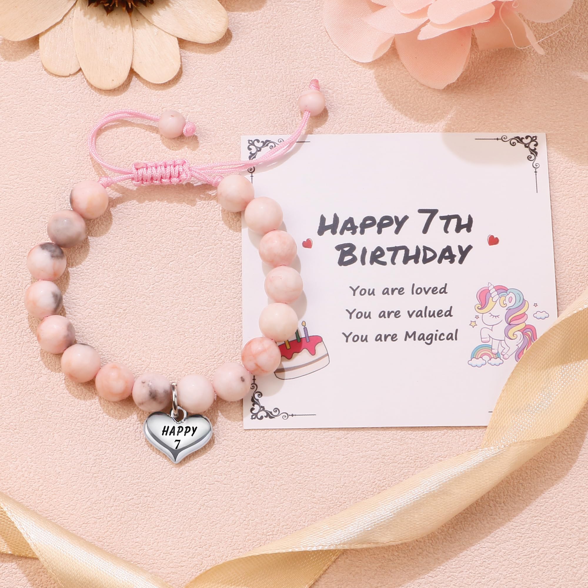 7yr Old Girl Birthday Gift: As unique gifts for 7 year olds girl, the 7th birthday pink beads natural stone bracelet is a great gift for girls, daughter, granddaughter, niece, cousin, goddaughter happy 7th birthday, This fabulous birthday bracelet makes a great surprise to your little princess for 7 year old birthday gifts