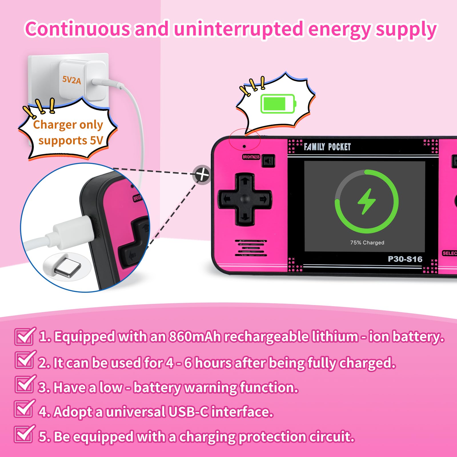 Convenient Rechargeable and Long - lasting Battery: The video game console is equipped with an 860mAh lithium - ion battery. It ensures that kids can play games without interruption, because there is no need for frequent battery replacement, which is very suitable for playing portable games outdoors. It is a great addition to the world of handheld games for children and can bring more fun to them.