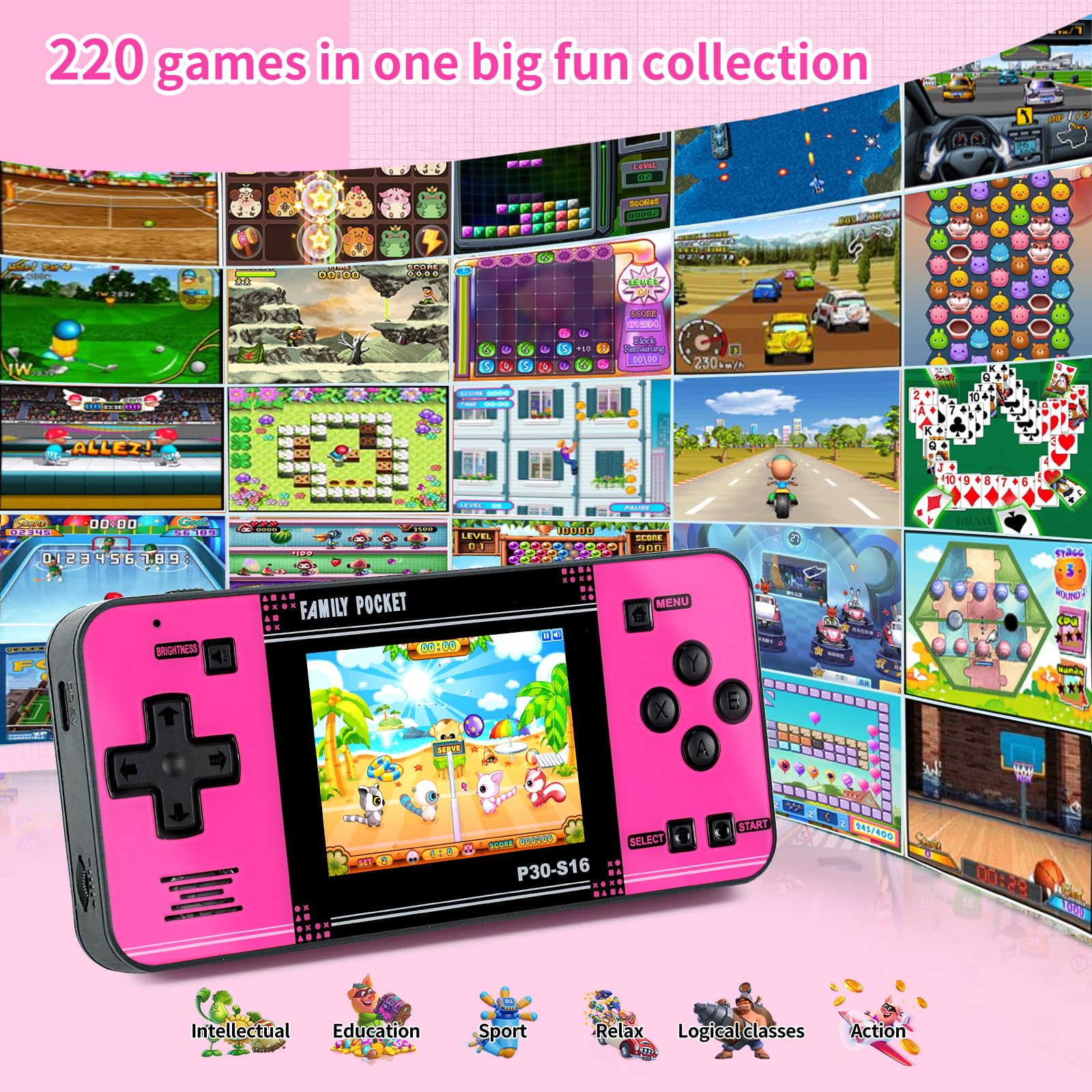 Rich Collection of Classic Games: This retro handheld game console contains 220 interesting kids video games, including various types such as entertainment, sports, and adventure games, just like those found in many retro game consoles. While playing these games, kids can cultivate skills such as hand - eye coordination, thinking, and problem - solving.