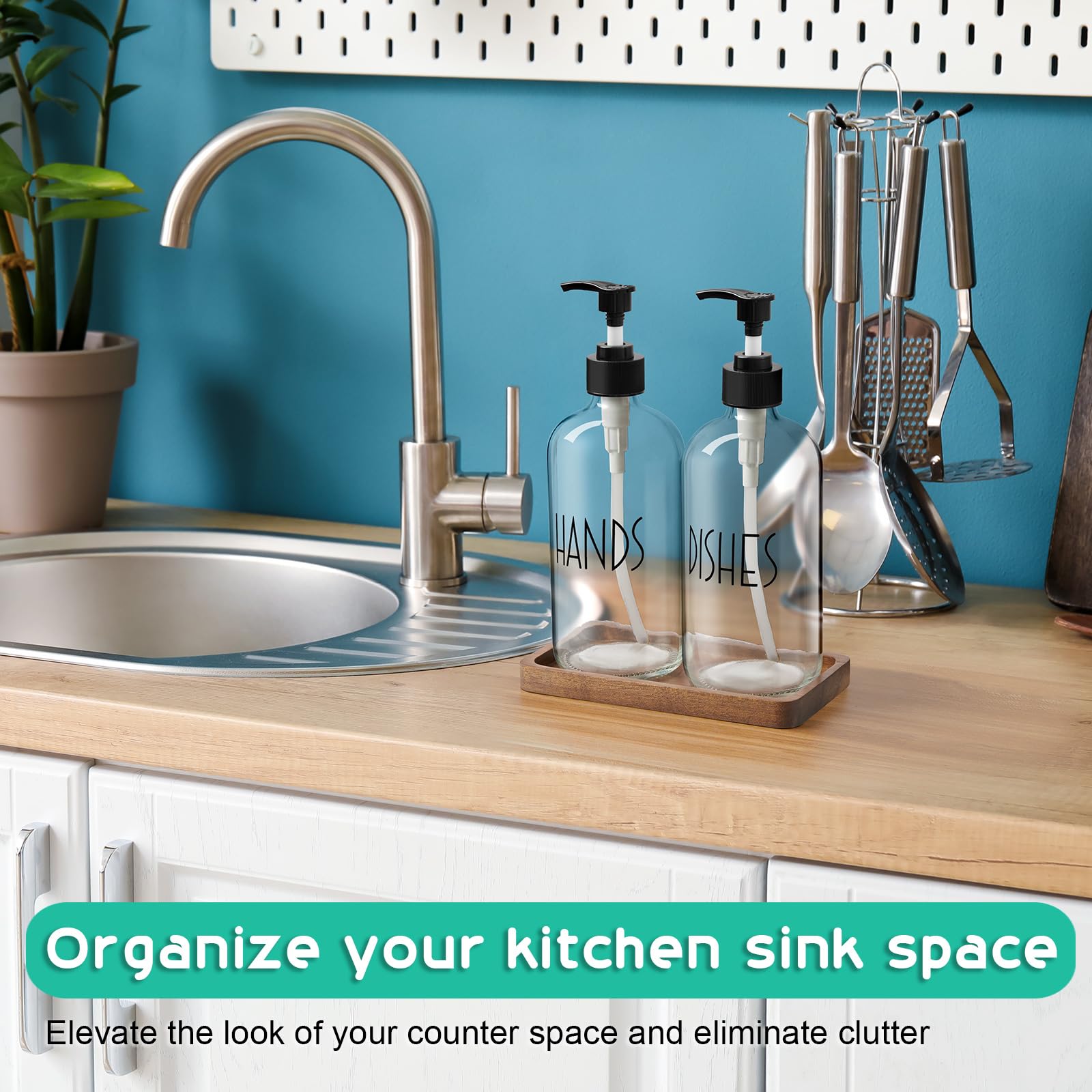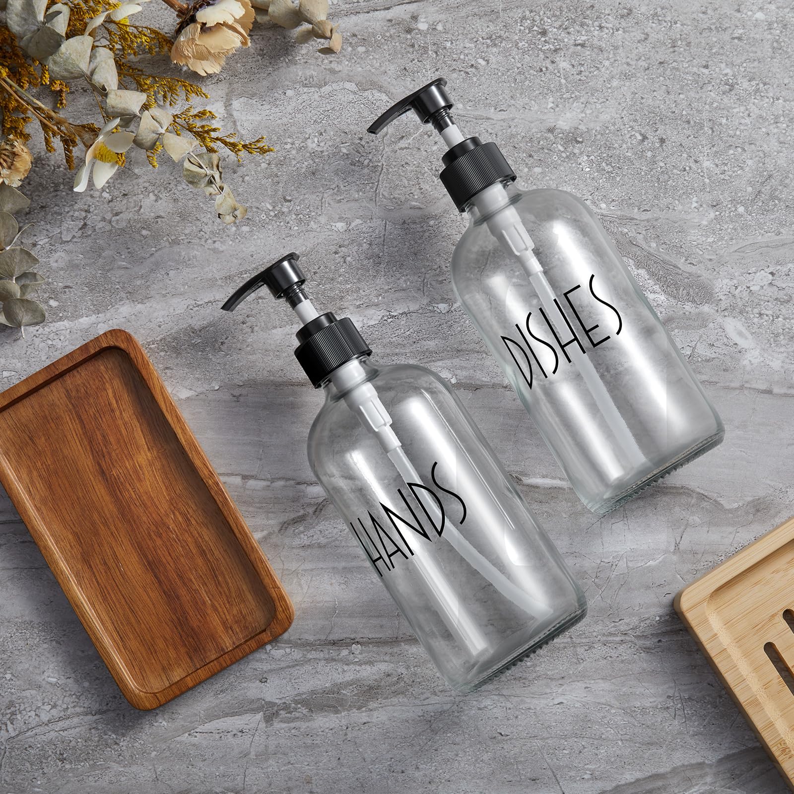 REDUCING PLASTIC WASTE - Create an intentional sink space by replacing store-bought bottles with refillable glass soap dispensers. Our 16-ounce refillable hand dispenser bottles promote a sustainable lifestyle and elevate the look of your kitchen, bathroom, and home.