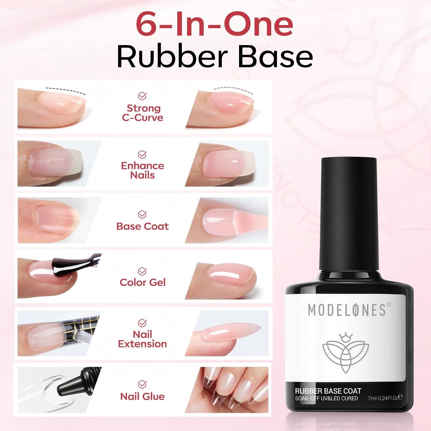 2026 New Color Rubber Base Gel : Modelones builder rubber base gel is specially designed to improve nail flexibility and protect natural nails from damage, suitable for thin, brittle nails. It has enhanced elasticity and flexibility, and can bend with natural nails to protect nails.