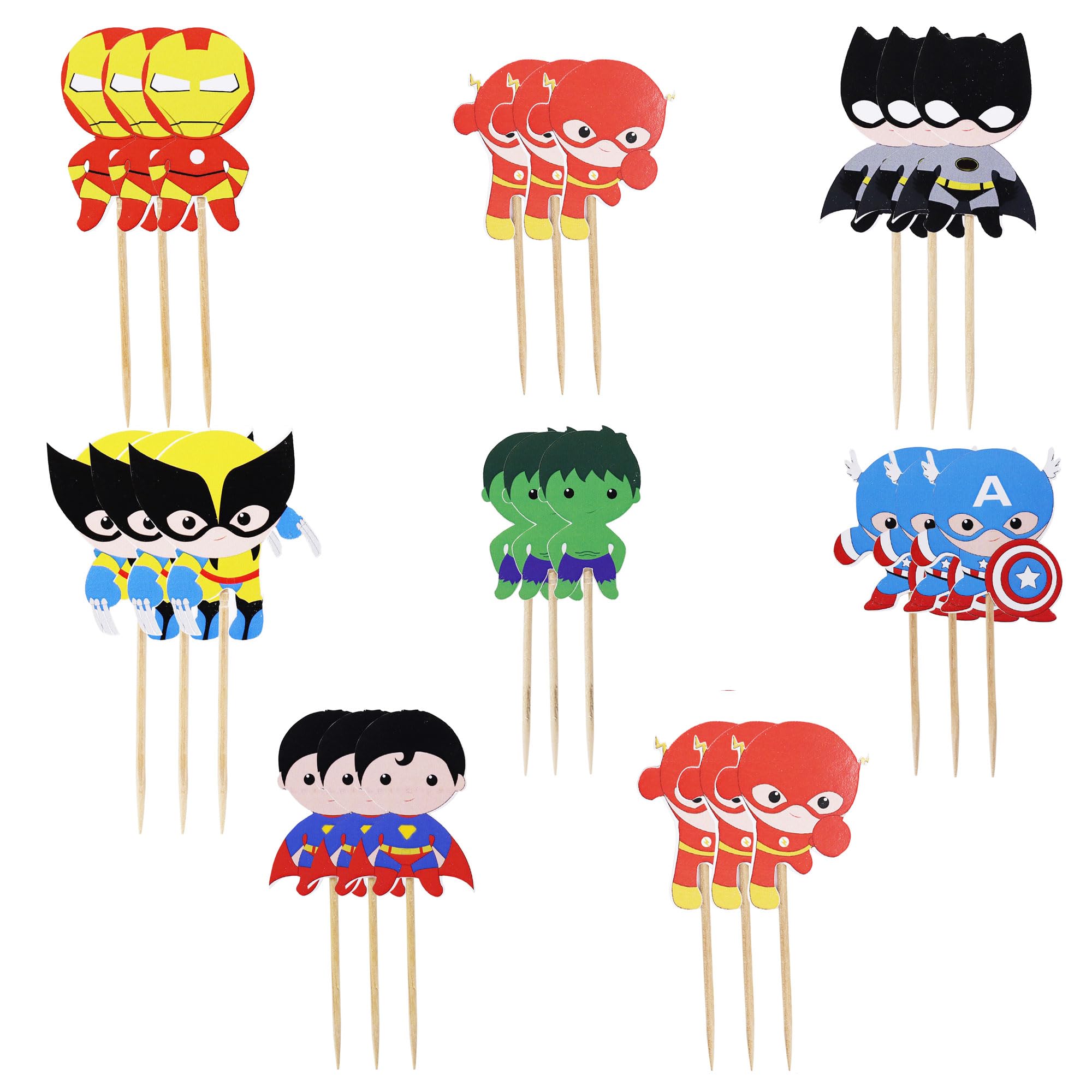 🦸 【Cartoon Superhero Cupcake Topper Package】Package included - 24 x cartoon superhero cupcake topper, 8 styles in total.
