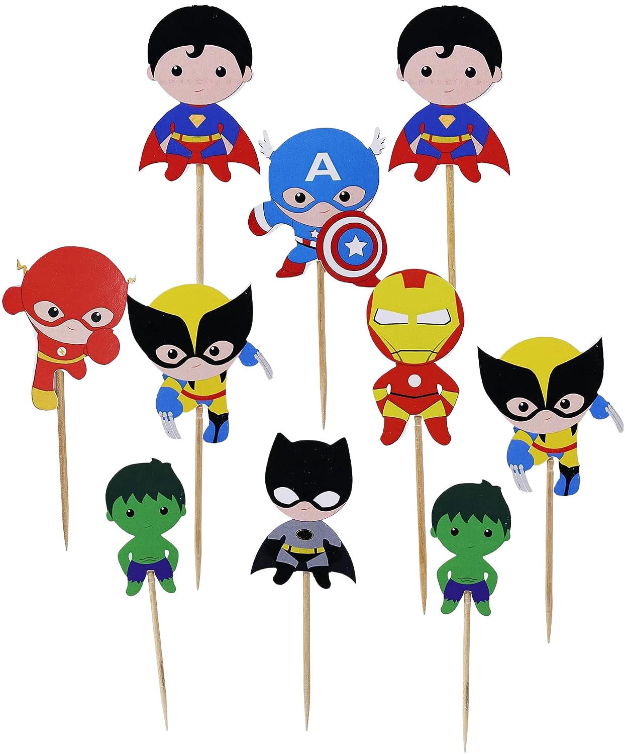🦸 【Cake toppers material 】 It used the environmentally-friendly paper card, single-sided design, food-grade toothpick, thick cardstock, high quality.