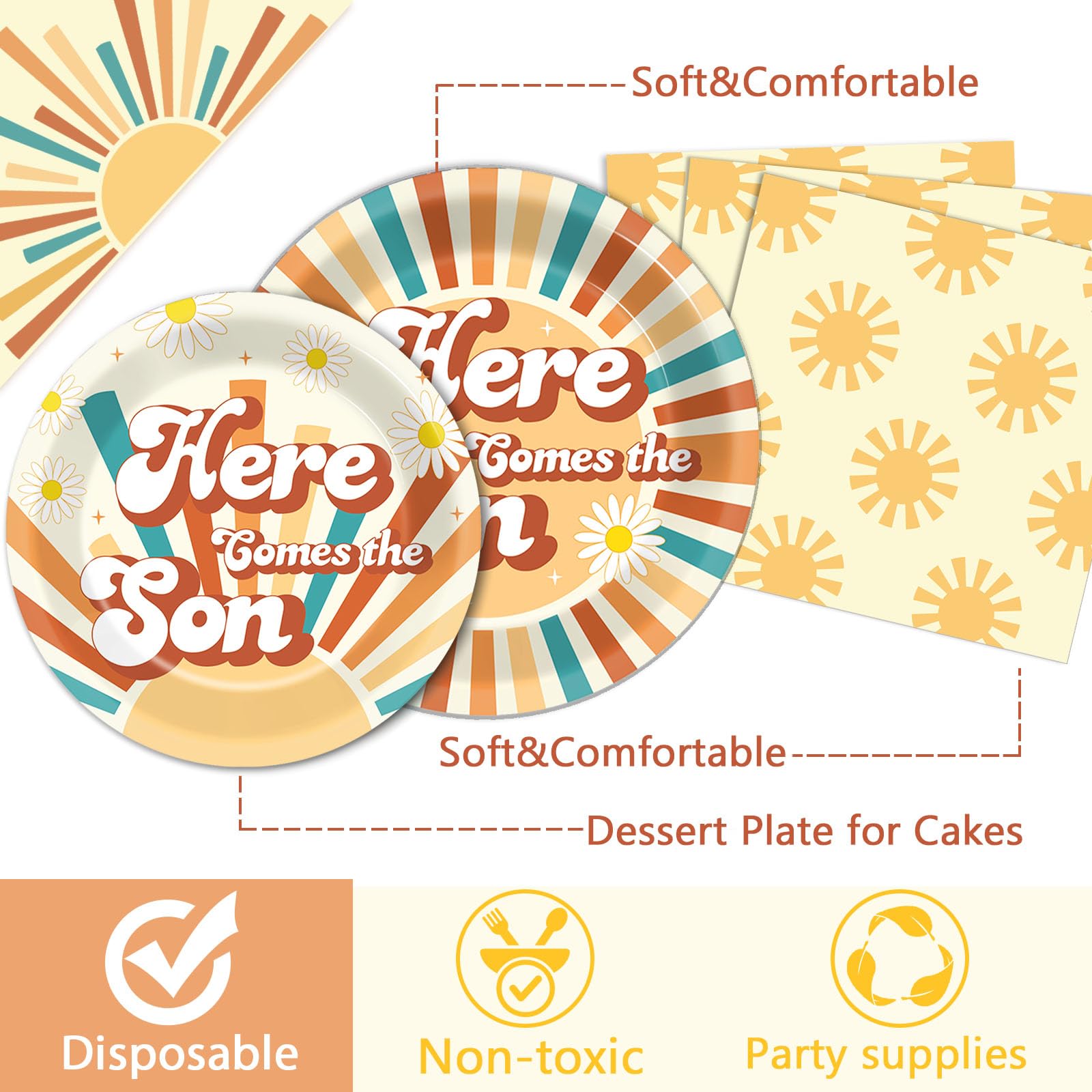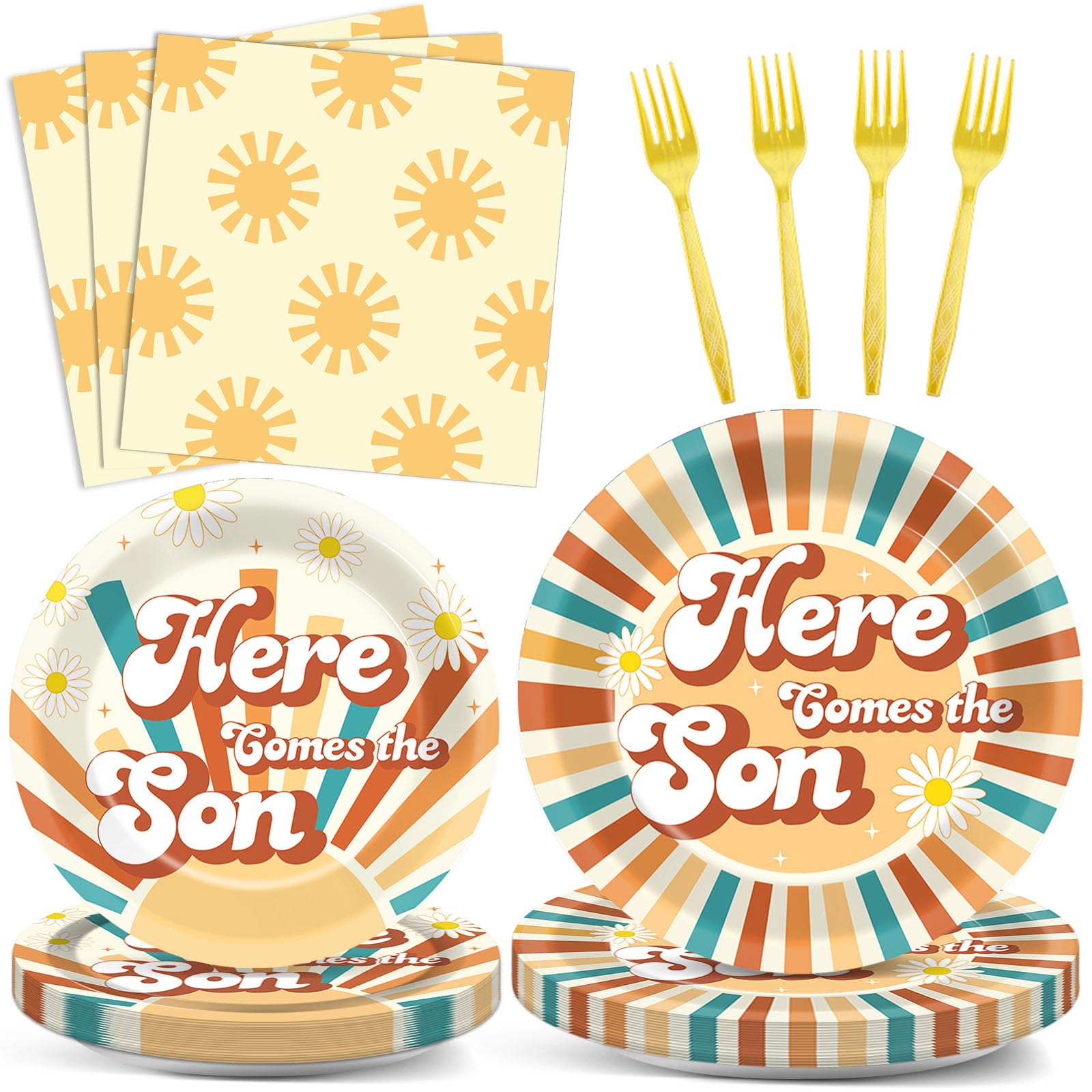Quality materials: Here Comes the Son plates and napkins set are made of paper, which is non-toxic and safe, very suitable for Here Comes the Son party decorations or various parties. Let customers more assured use.