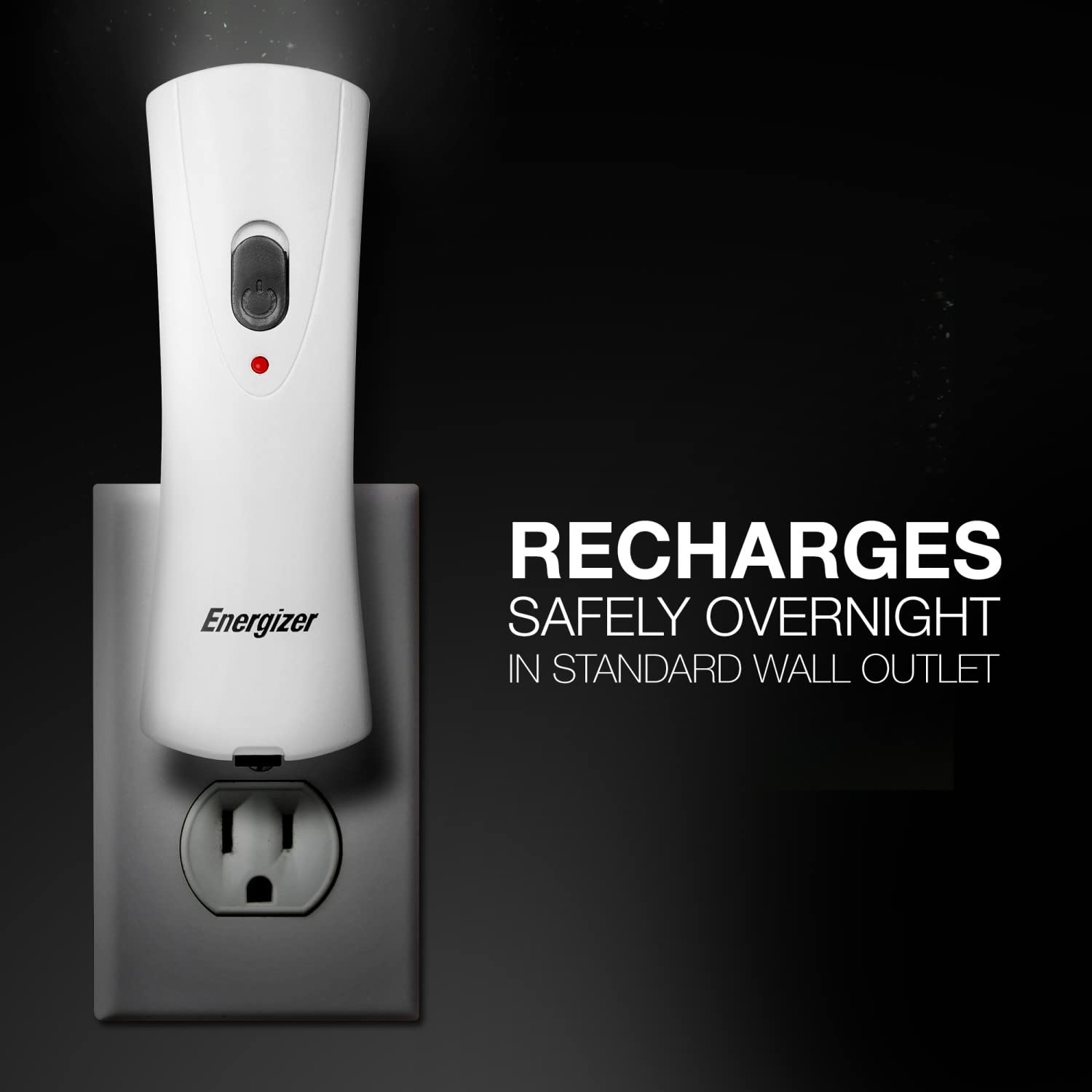 [IDEAL EMERGENCY FLASHLIGHT]: This Energizer WeatheReady Compact Rechargeable LED Flashlight plugs into any outlet—the ideal design for rechargeable flashlights in a power outage