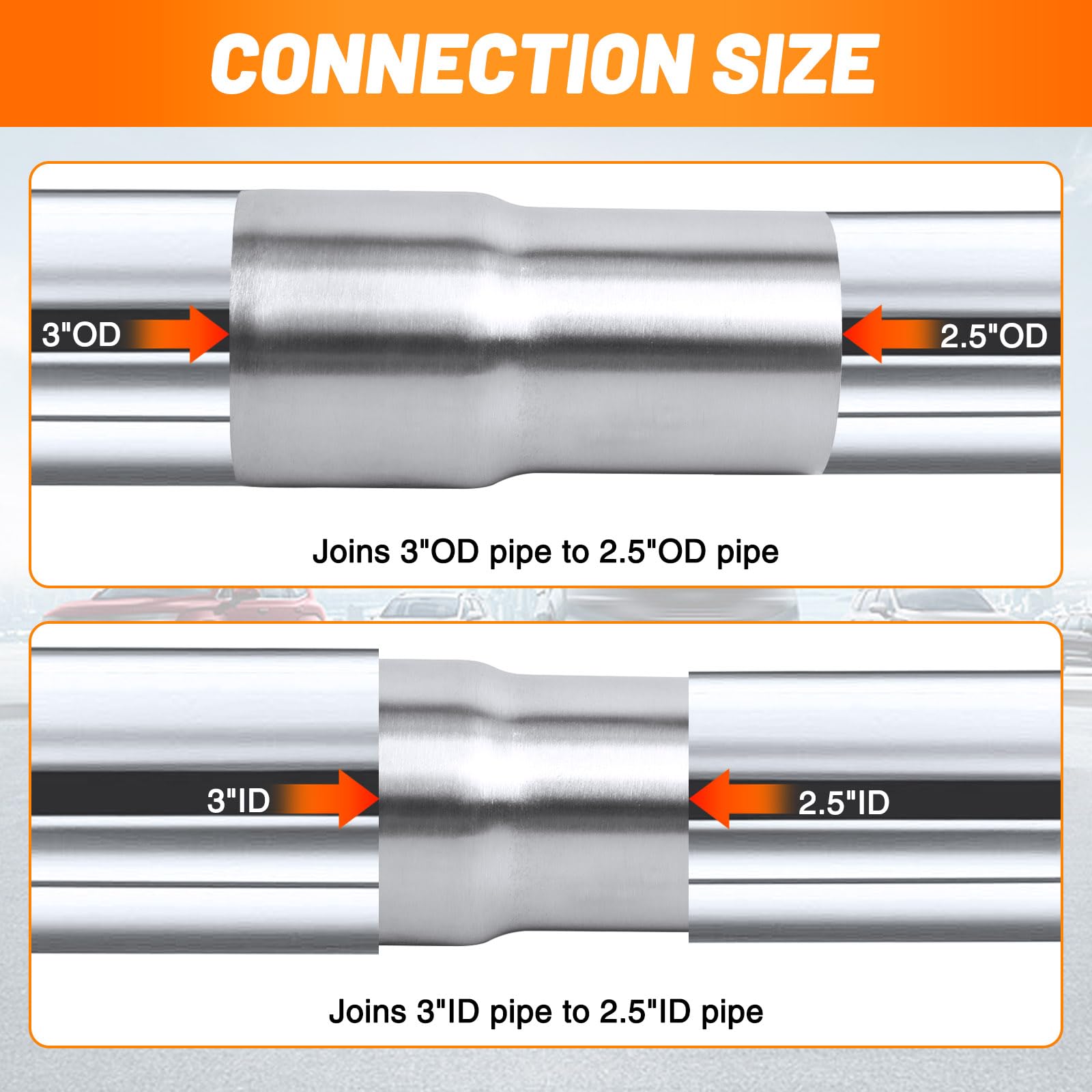 ➤ Package: 2Pcs stainless steel 2.5 to 3 Inch exhaust adapter. Universal used for all exhaust, turbo, intercooler, intake piping connection