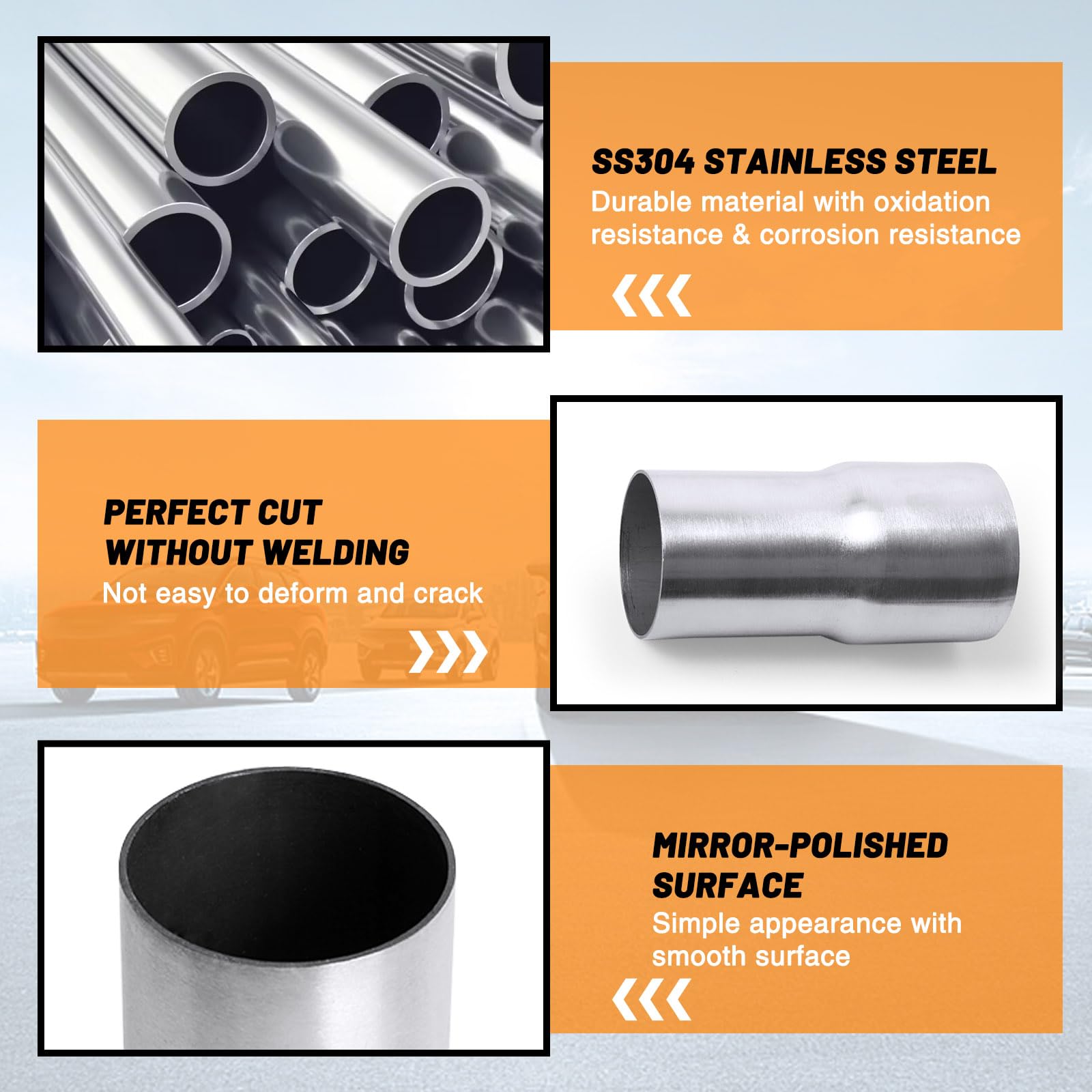 ➤ DIY Exhaust Pipe: The exhaust reducer eliminates the gap and achieves a nice transition from 3" to 2.5",widely used for exhaust system. Suitable for any exhaust pipe, exhaust tip, resonator, muffler, connecting components of different sizes on both sides