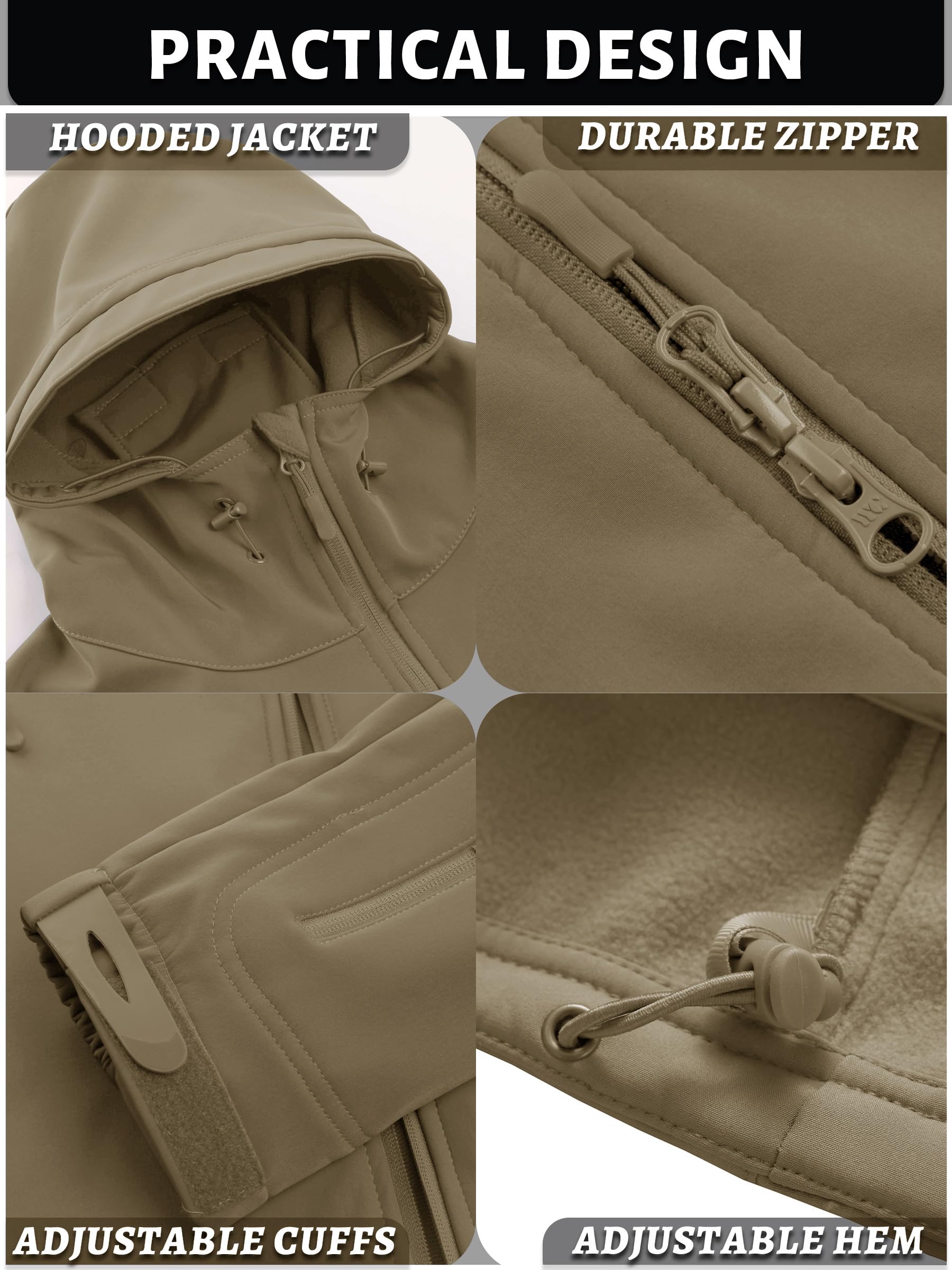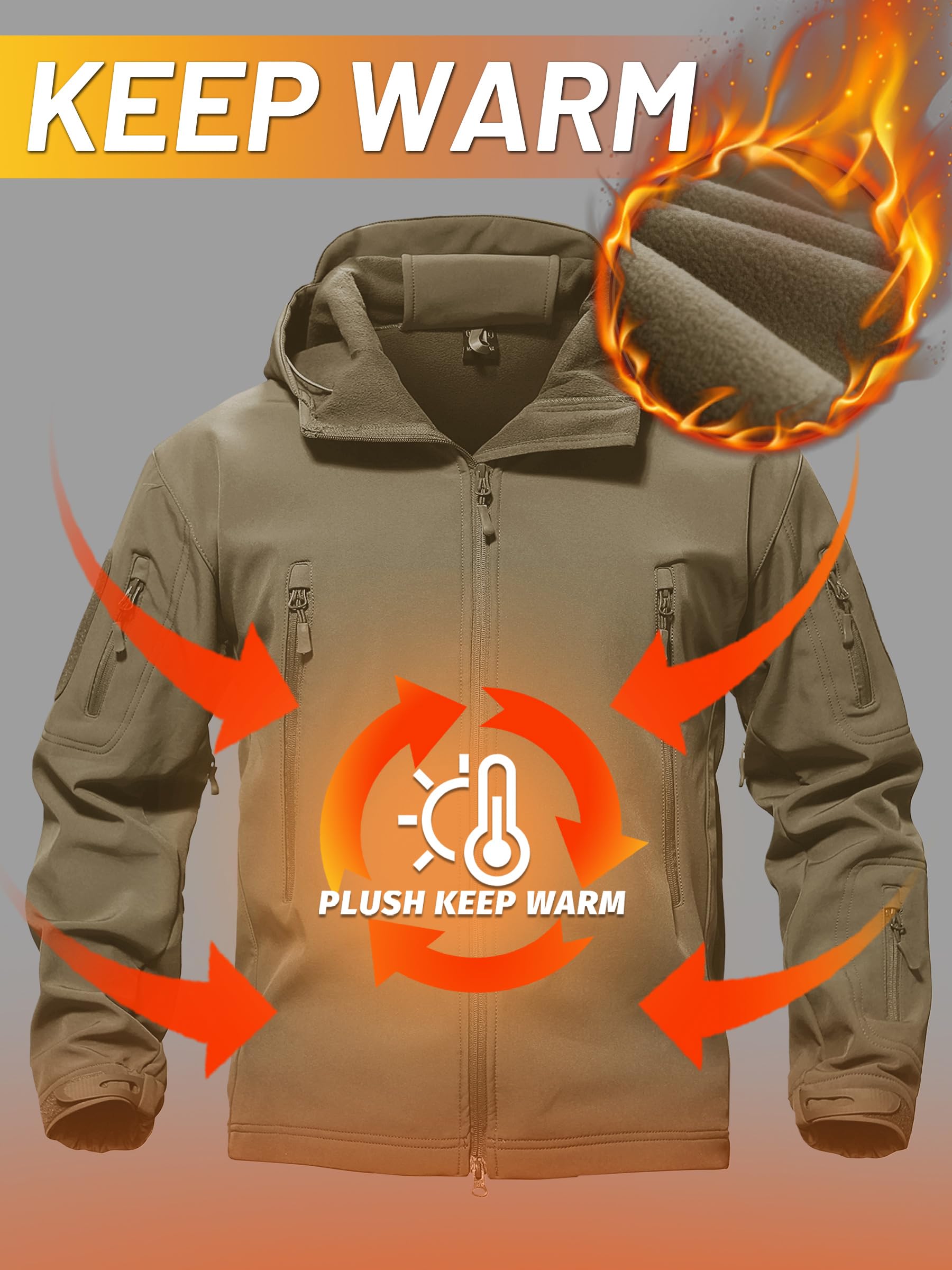 【Waterproof & Windproof】This softshell fleece-lined jacket is treated to repel water while maintaining breathability. And it effectively prevents rainwater from entering your interior fabric, keeping you dry and comfortable.It helps to keep the cold wind out in cold winter weather. As well as preventing cold wind from entering the body to some extent.