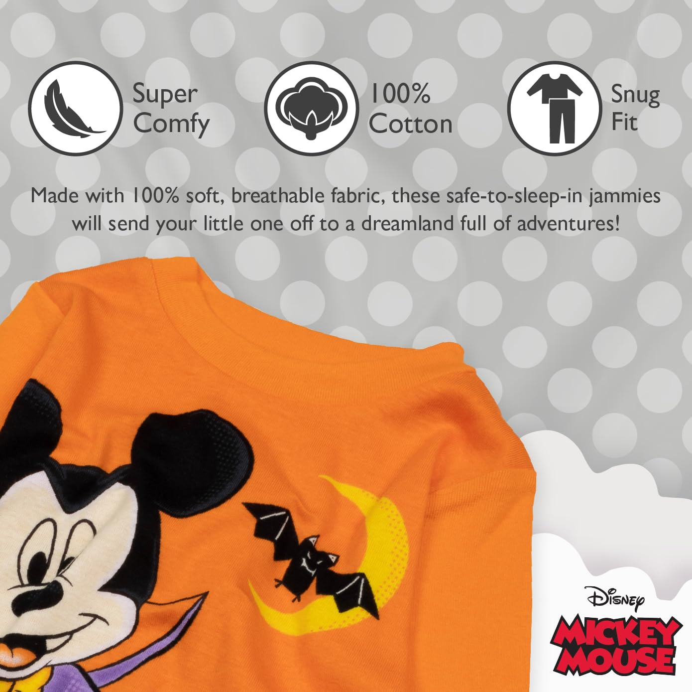 TODDLER & BIG-KID SIZES: Our cute Mickey Mouse pj’s are snug-fit apparel and are available in sizes 12M–10. Your little ones will love the comfort that these 100% cotton jammies provide. Our sleepwear pajama sets will make bedtime fun!