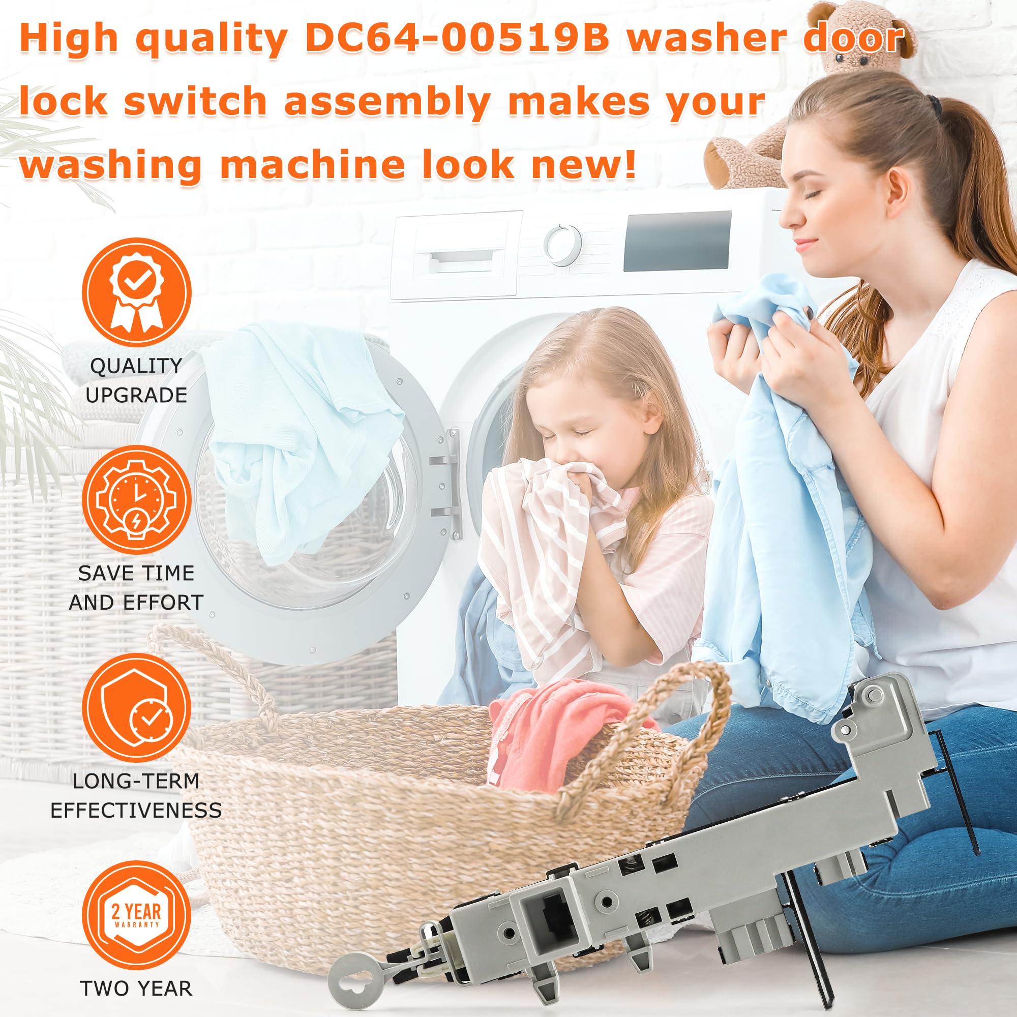 EASY DIY INSTALLATION -- The Whirl-pool wp8182634 washer door lock assembly (part number 461970200692 DC64-00519B) plays a vital role in maintaining the safety of your washer's operation. Installation should be unplugged from the washer. Tools needed: screwdriver, work gloves