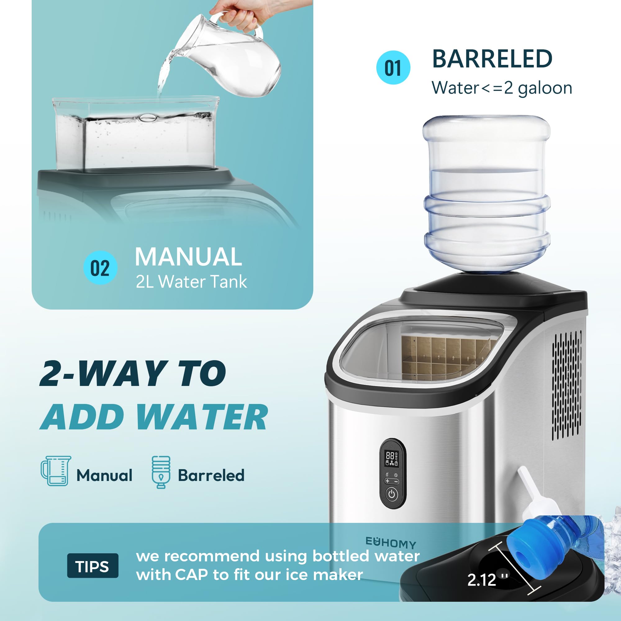 Accessories & Service Promise: Include external water tank, ice basket, ice scoop, manual and well-designed package. Our Mission is committed to providing customers with premium EUHOMY ice maker at a reasonable price. You totally deserve a more exquisite life! We offer 12-month after-sales service from the original purchase date & technical service support. Suppose you have any questions about using our Ice Maker, our customer support is always ready to help you