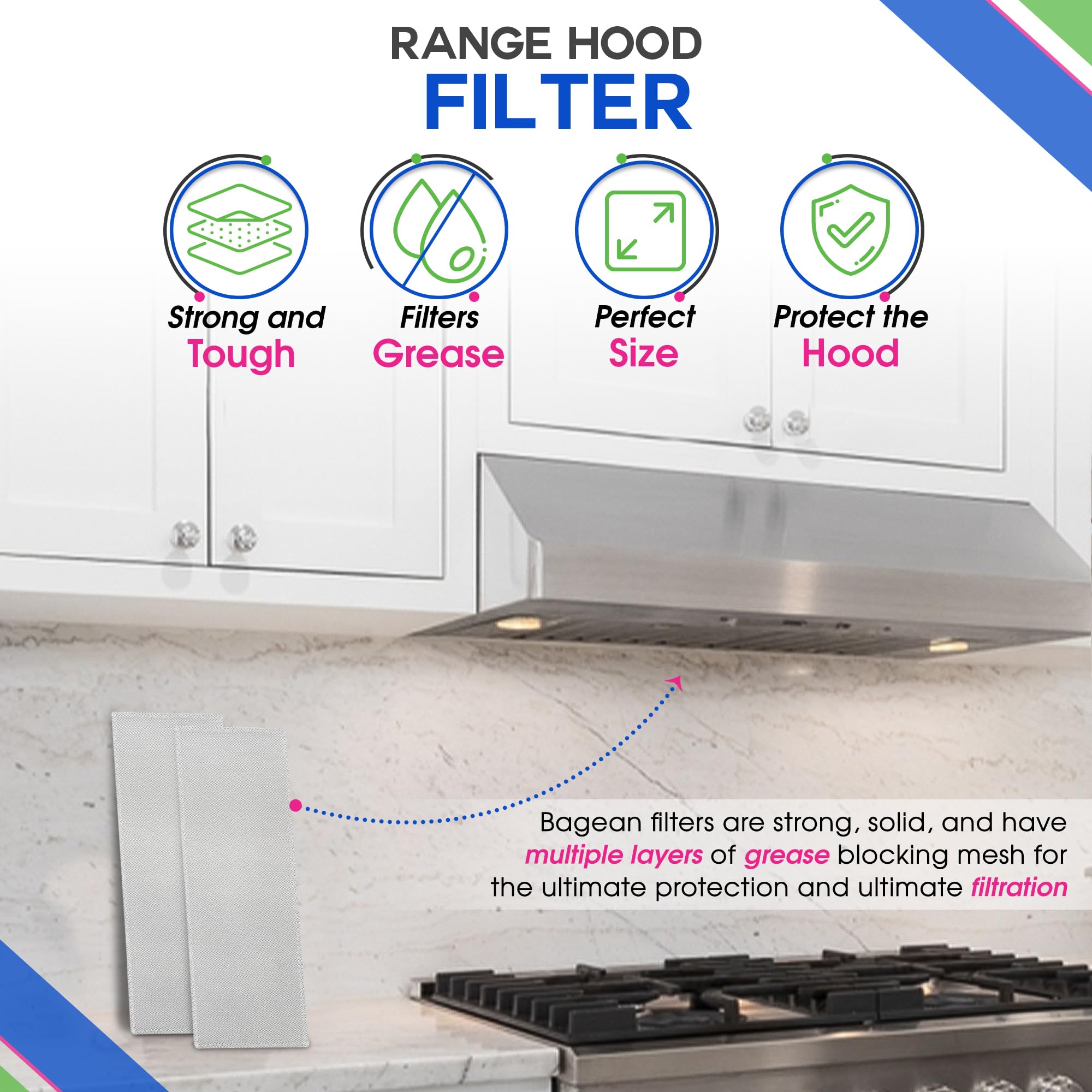 PERFECT FIT: This vent hood filter replacement will fit the hood filters for kitchen perfectly, Please contact us if you are unsure if this filter for vent hood will fit your specific model.