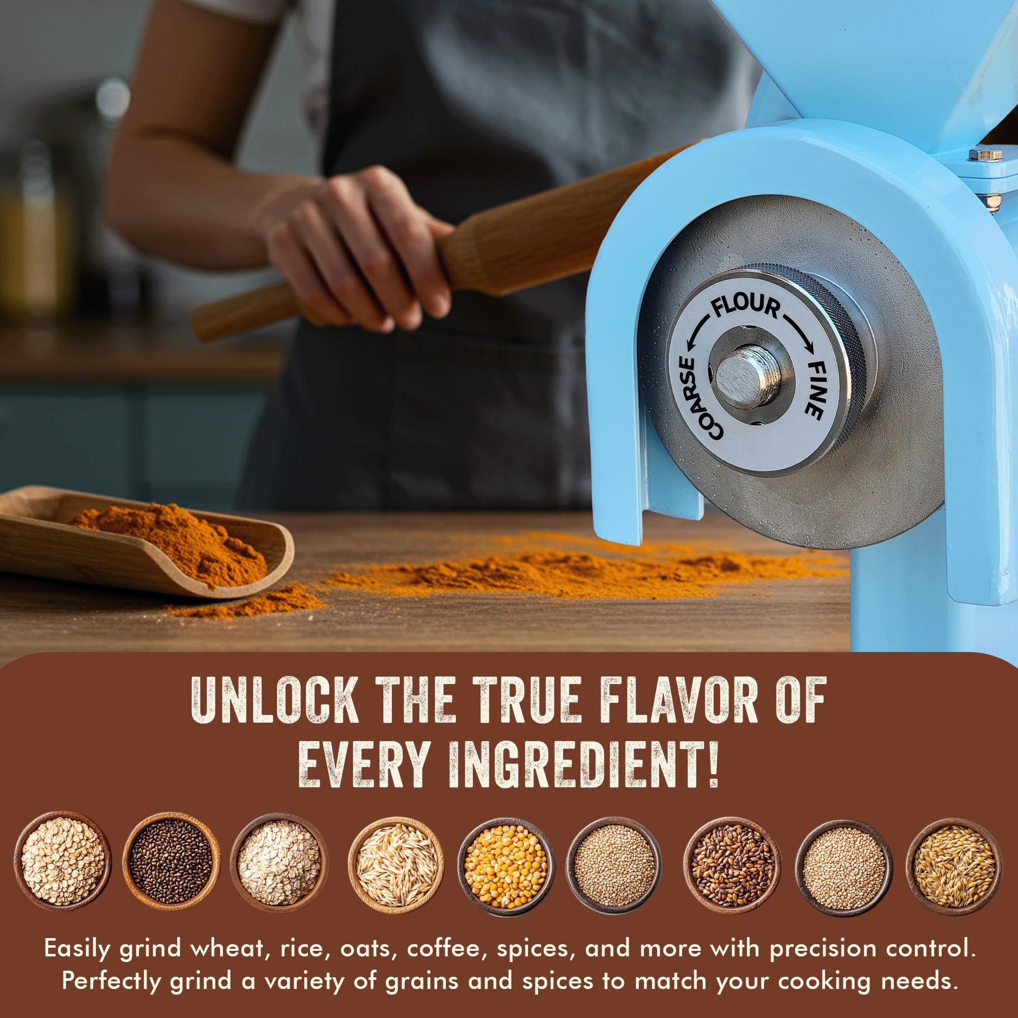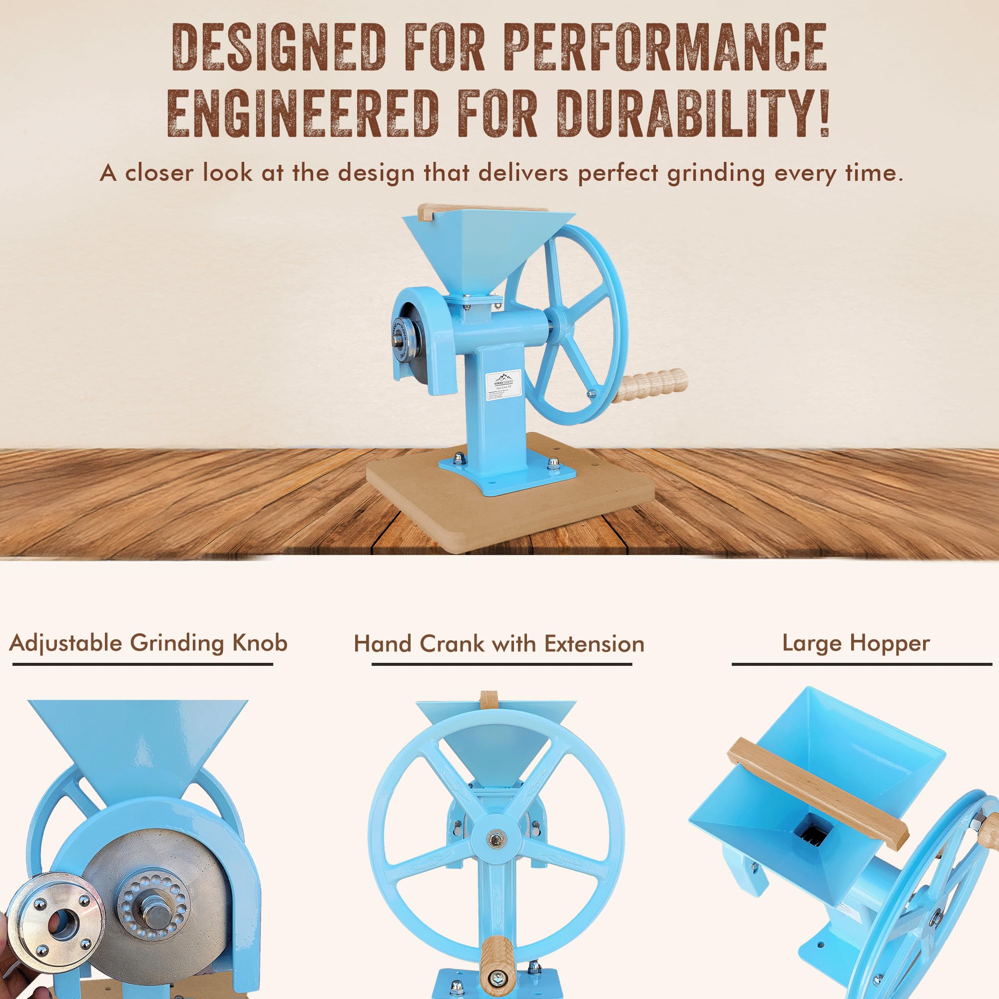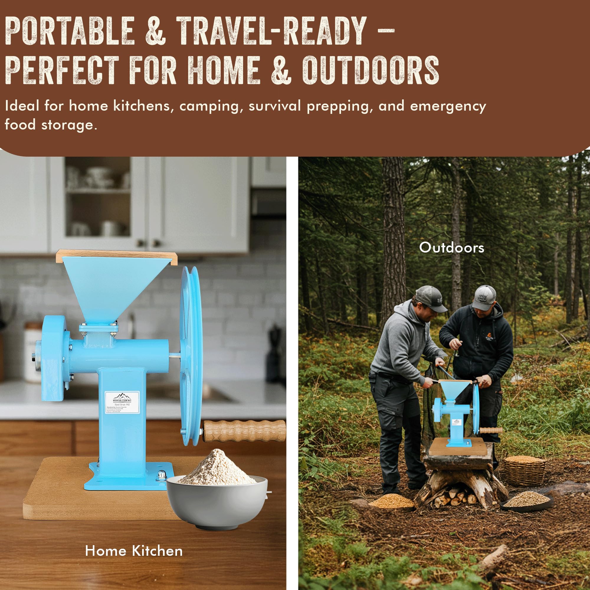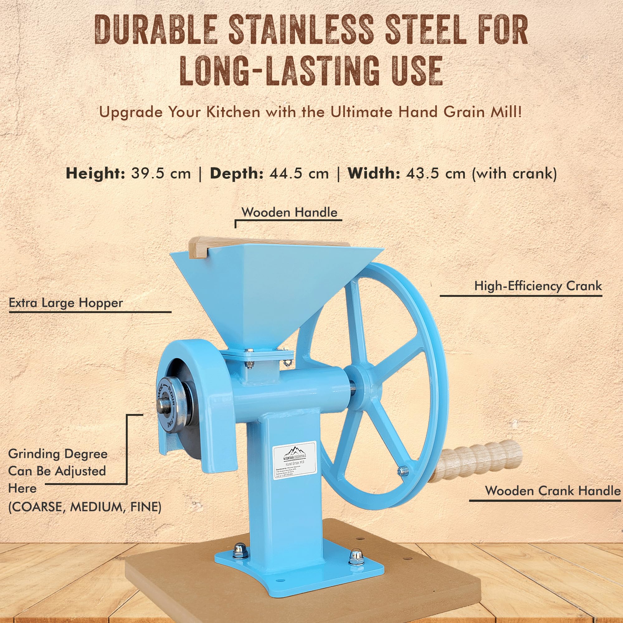 MULTI FUNCTIONAL USE:- The MOUNTAIN ESSENTIALS manual hand grain mill can be used for grinding various dry grains such as wheat, corn, rice, oats etc., making it perfect for everyday use in the kitchen.